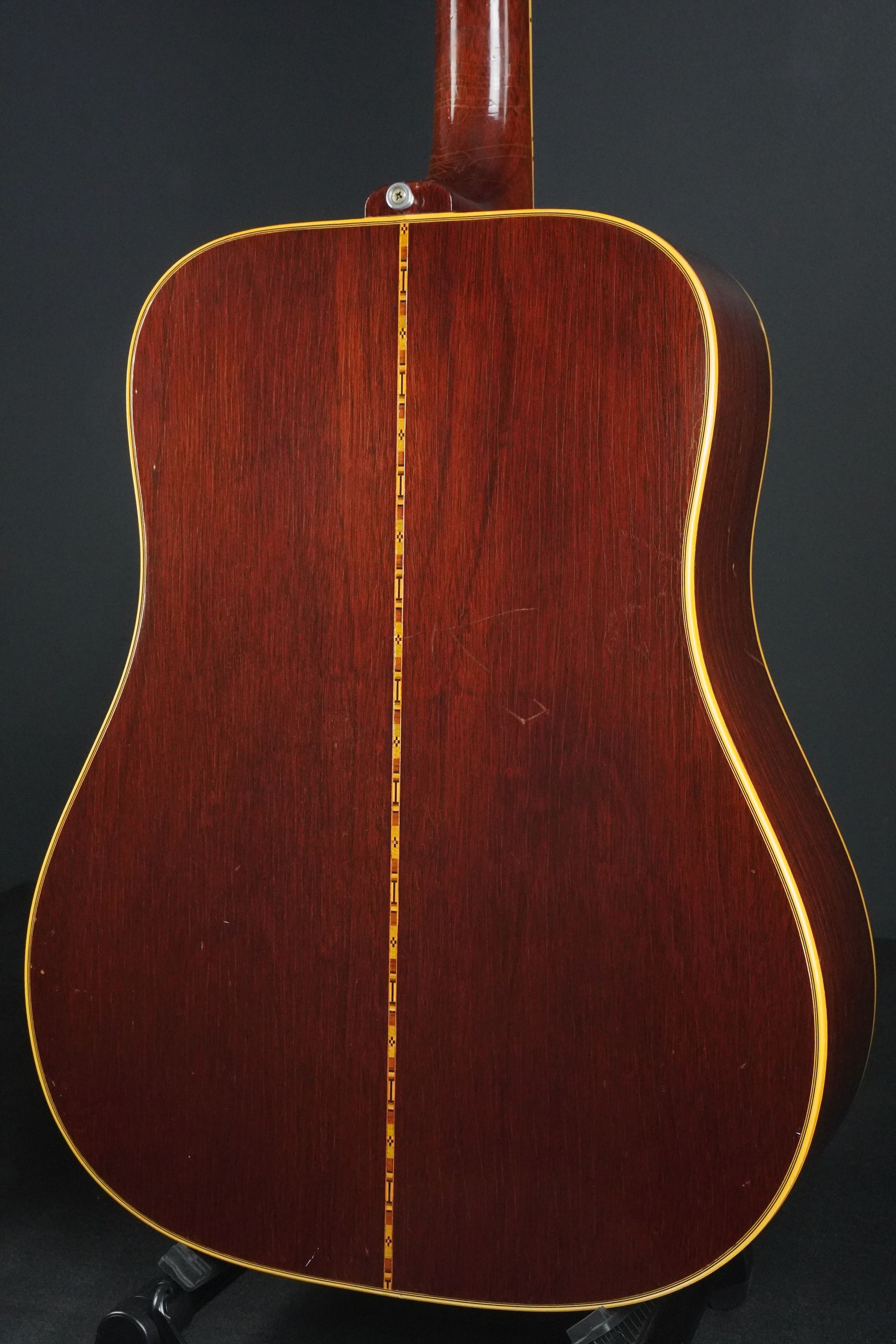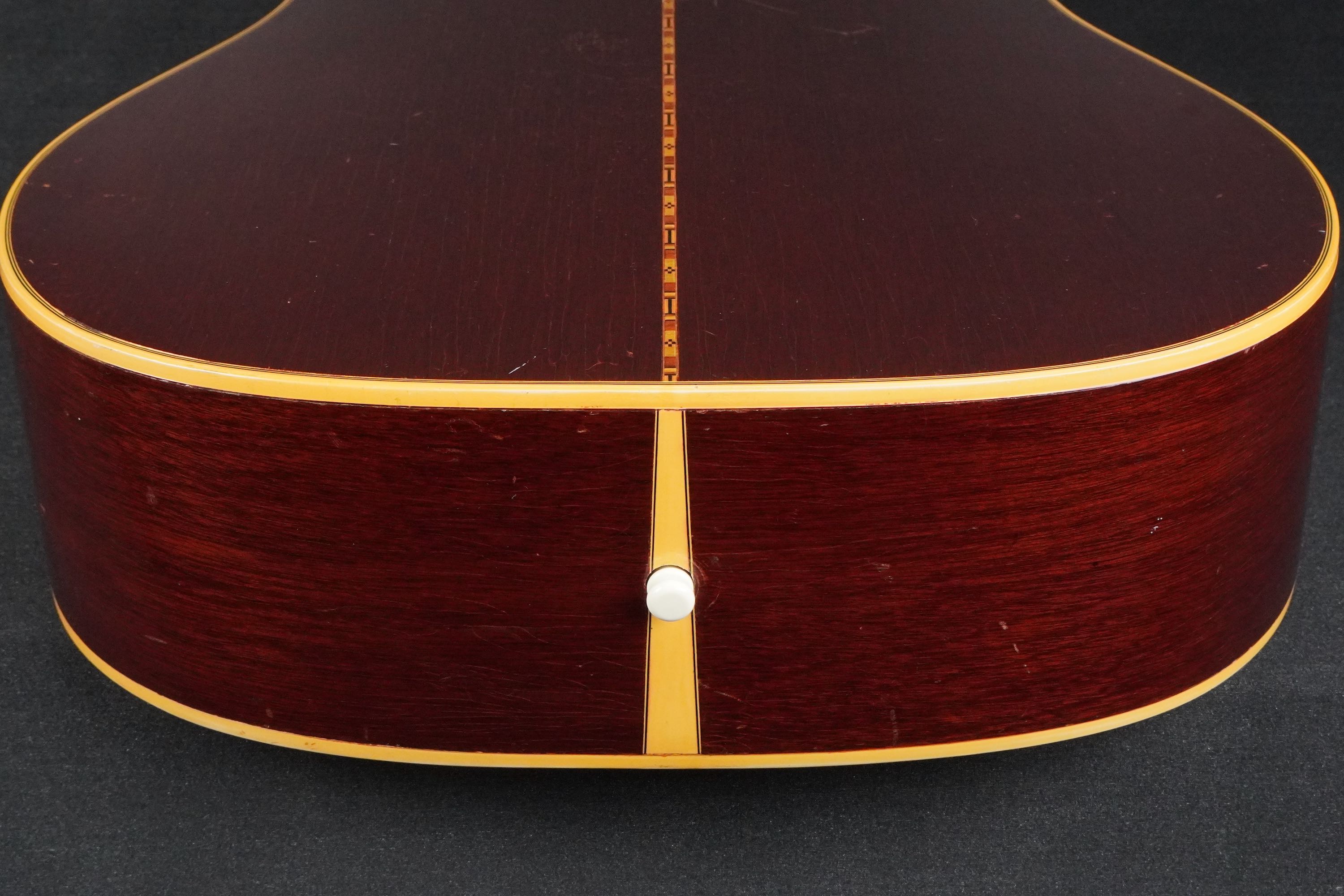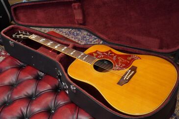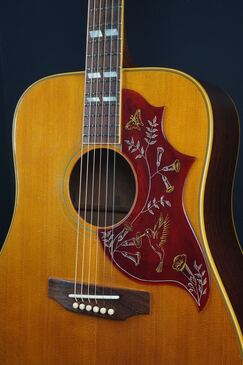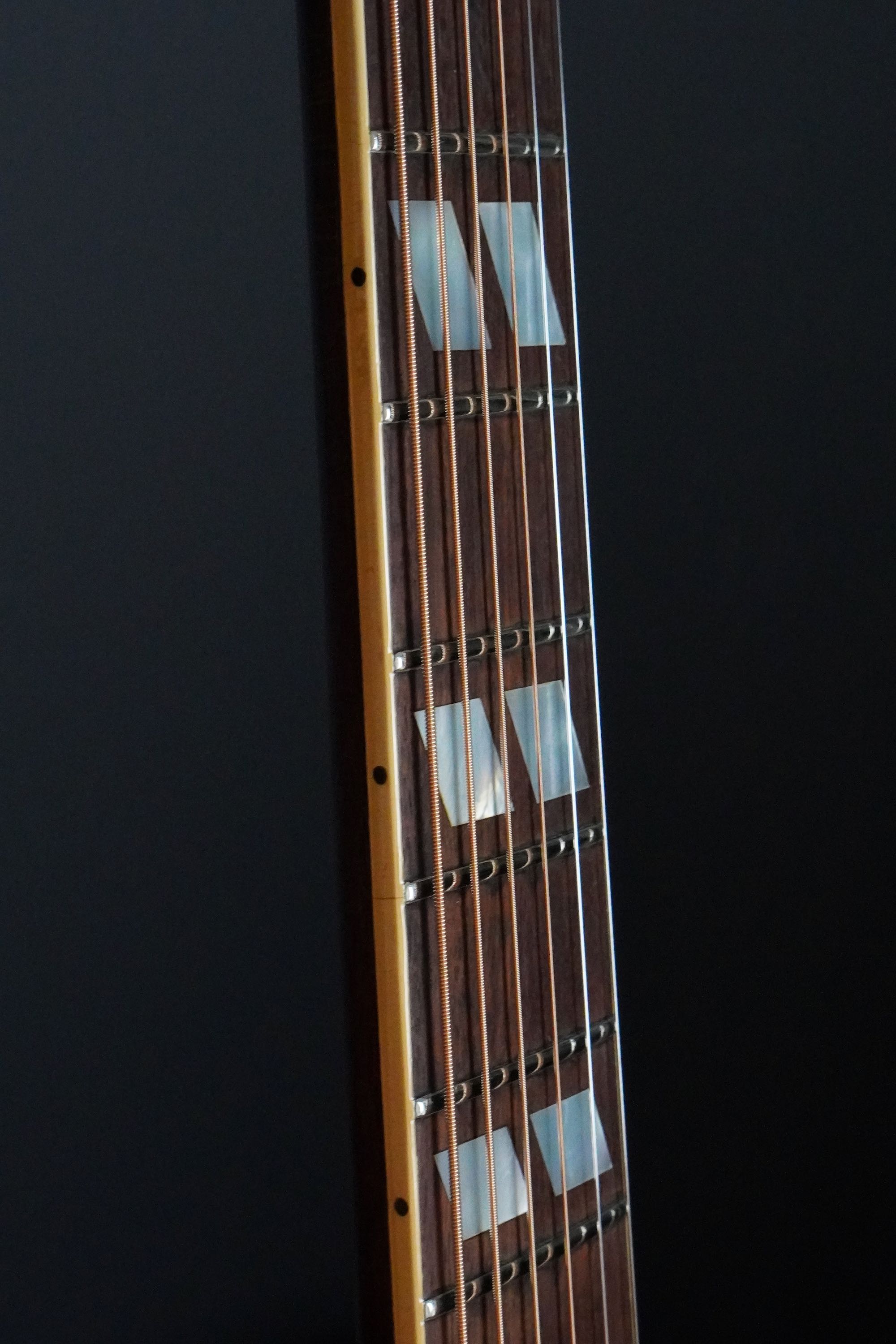 ボディはノーマルサドル以前の元々がアジャスタブル時期をサドル改造しており、ブレーシングも60年代後期の、ややガッチリし出した頃ですが、ダブルXになる以前、ネックグリップもナローからレギュラーグリップになった頃ですので、ギターの鳴り方は69年頃のハミングバードに近い感じです。