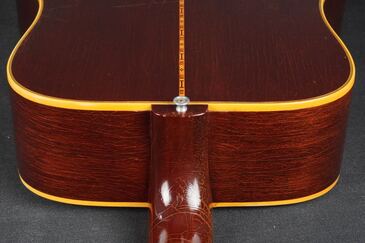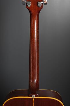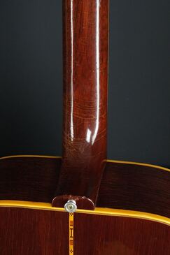 ボディのバックにも、センターに寄木細工の凝ったセンターストリップが入った仕様が過渡期らしく、ペタっとしたネックヒールも、この時期らしい形です。