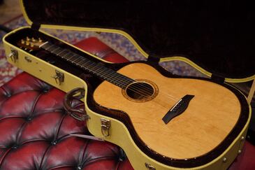 ルックスも、一見するとシンプルな装飾のようですが、上質なウッドマテリアルや手の込んだ造りなど、なかなかこだわりが詰まったギターで、サウンドも、マーチンの45のような美しいクリスタルな倍音感が楽しめるギターです。