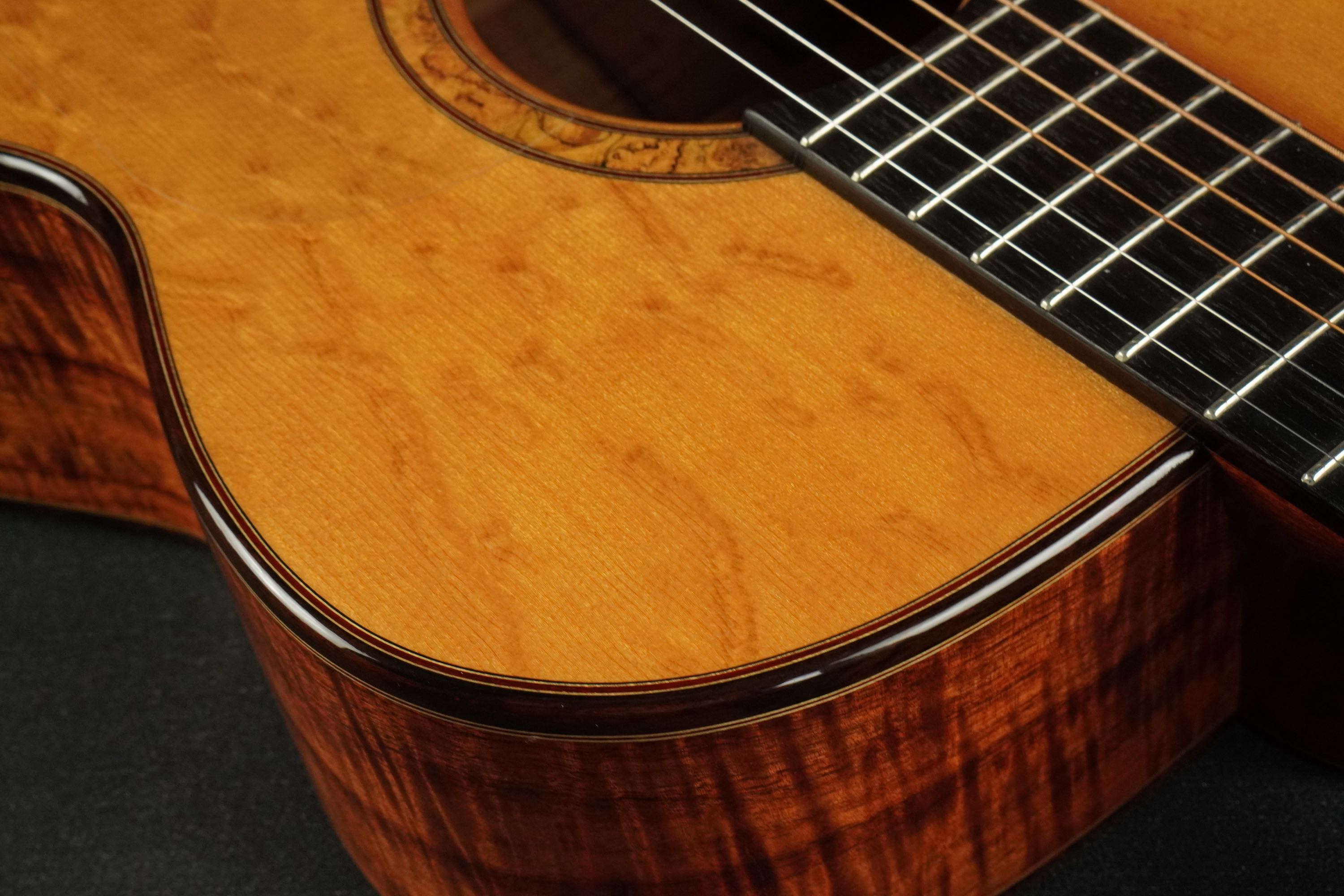 これほどシッカリとした杢がトップ前面にビッシリと出たベアクロー材は珍しく、このような凄いベアクローは近年では入手が難しい、まさにマスターグレードの素晴らしい材です。