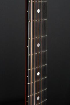 トップのスプルースも、みっちりと詰まった木目にフワッと細かな杢が仄かに入った、かなり上質な良材が厳選されており、どちらもカスタムモデルらしいウッドマテリアルの組み合わせです。