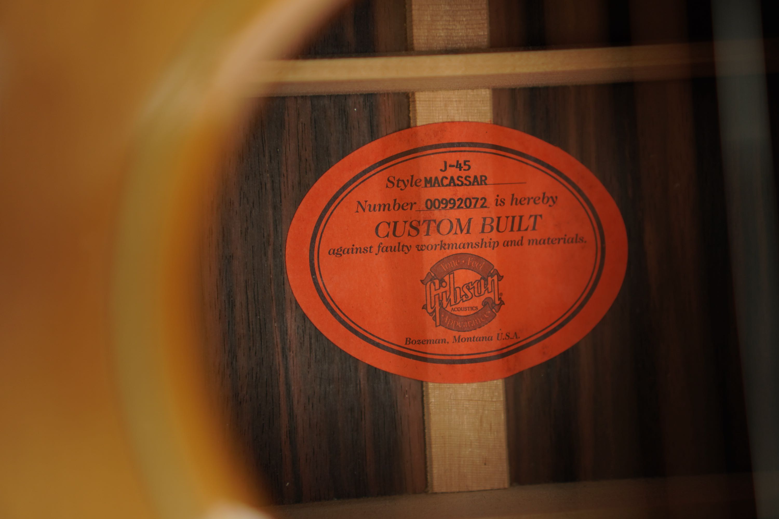 2002年製カスタムショップ製J-45で、貴重なマッカーサーエボニーを用いたカスタムモデル!
