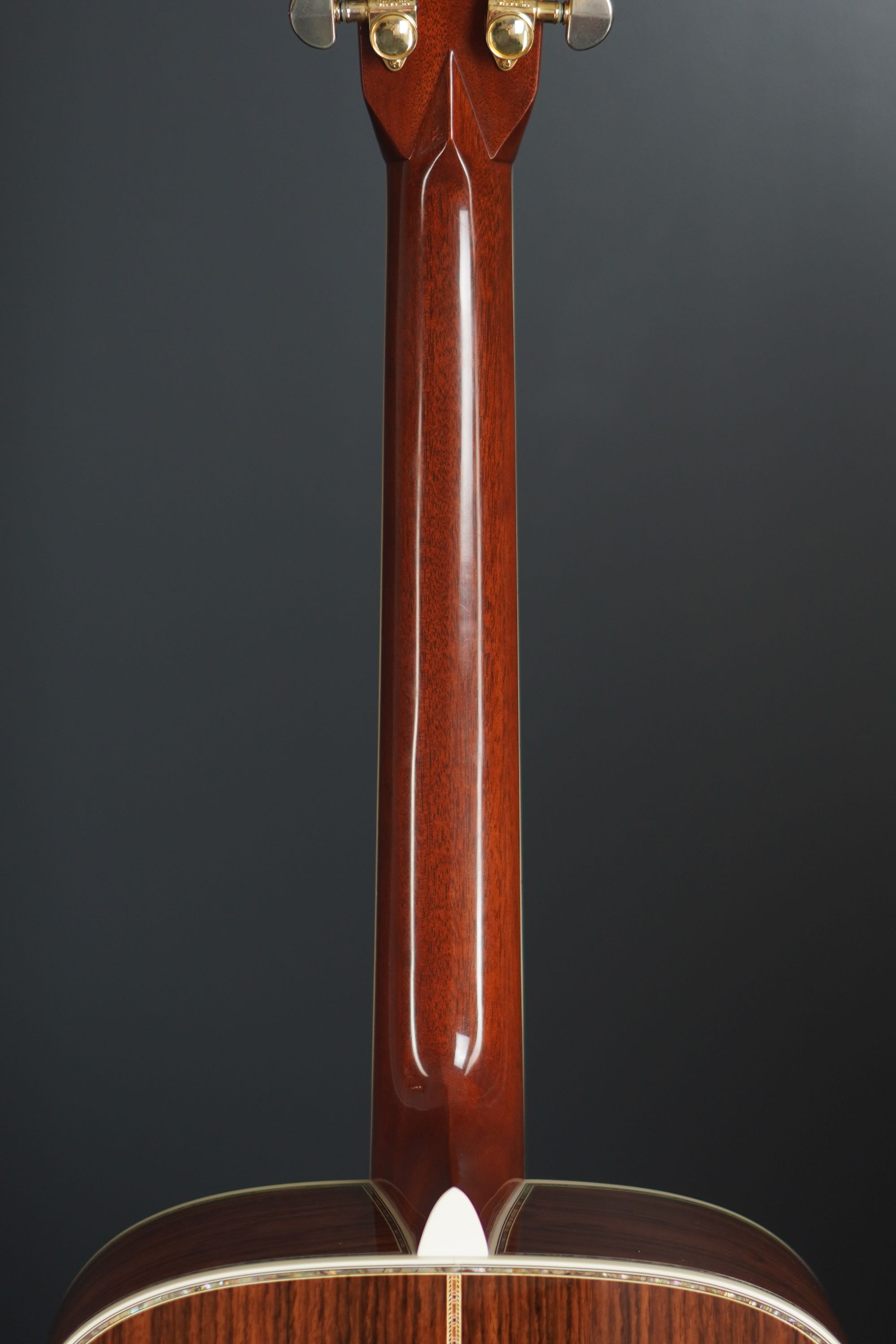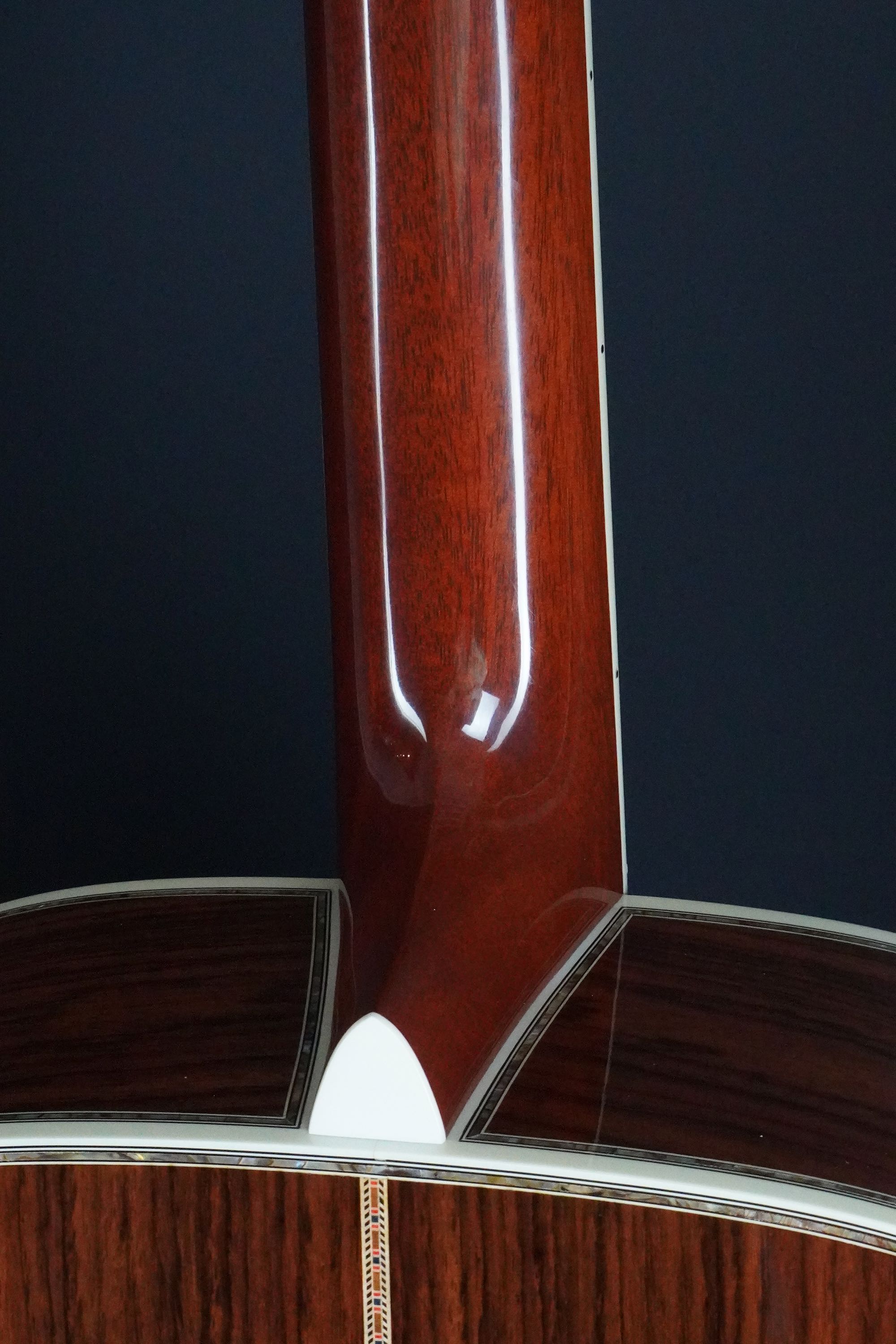 マホガニーのネックは、ナット幅が約43mm程のややガッチリとしたグリップ感で、トラスロッドも1968年のオリジナルD-45と同様にSQネックとなっております。