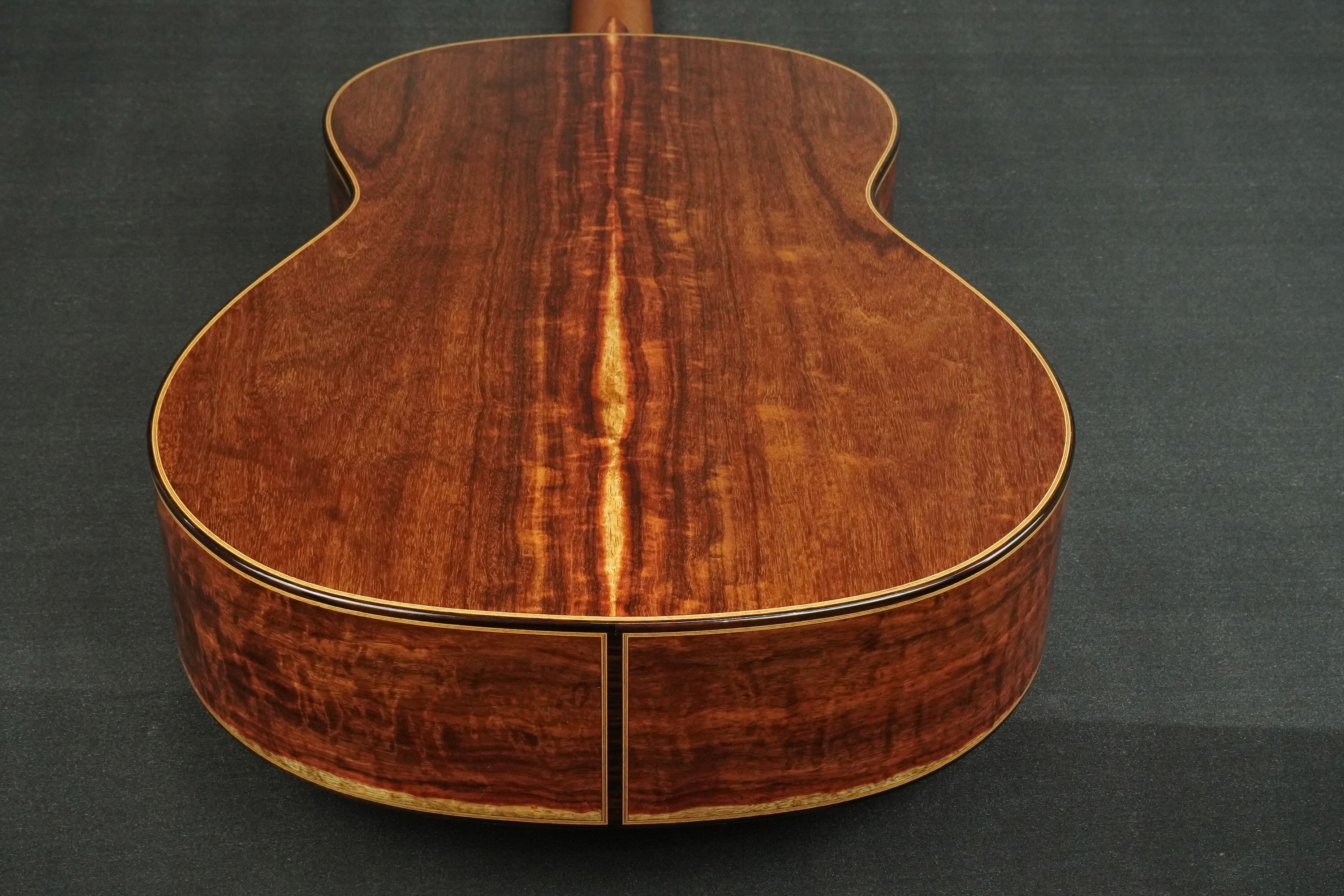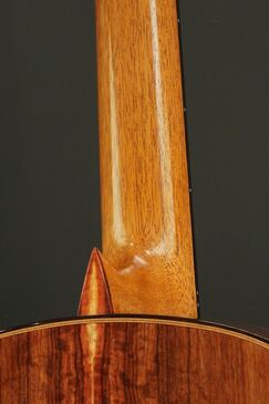 ボディと同じく、サップを活かして、ブックマッチに仕上げ、フィギャードの濃淡が深い輝きで、杢の立体的な動きがあります。
