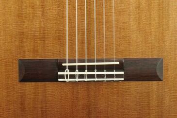ブリッジはシンプルでとても上品な佇まい。美しいインディアンローズウッドが選ばれています。