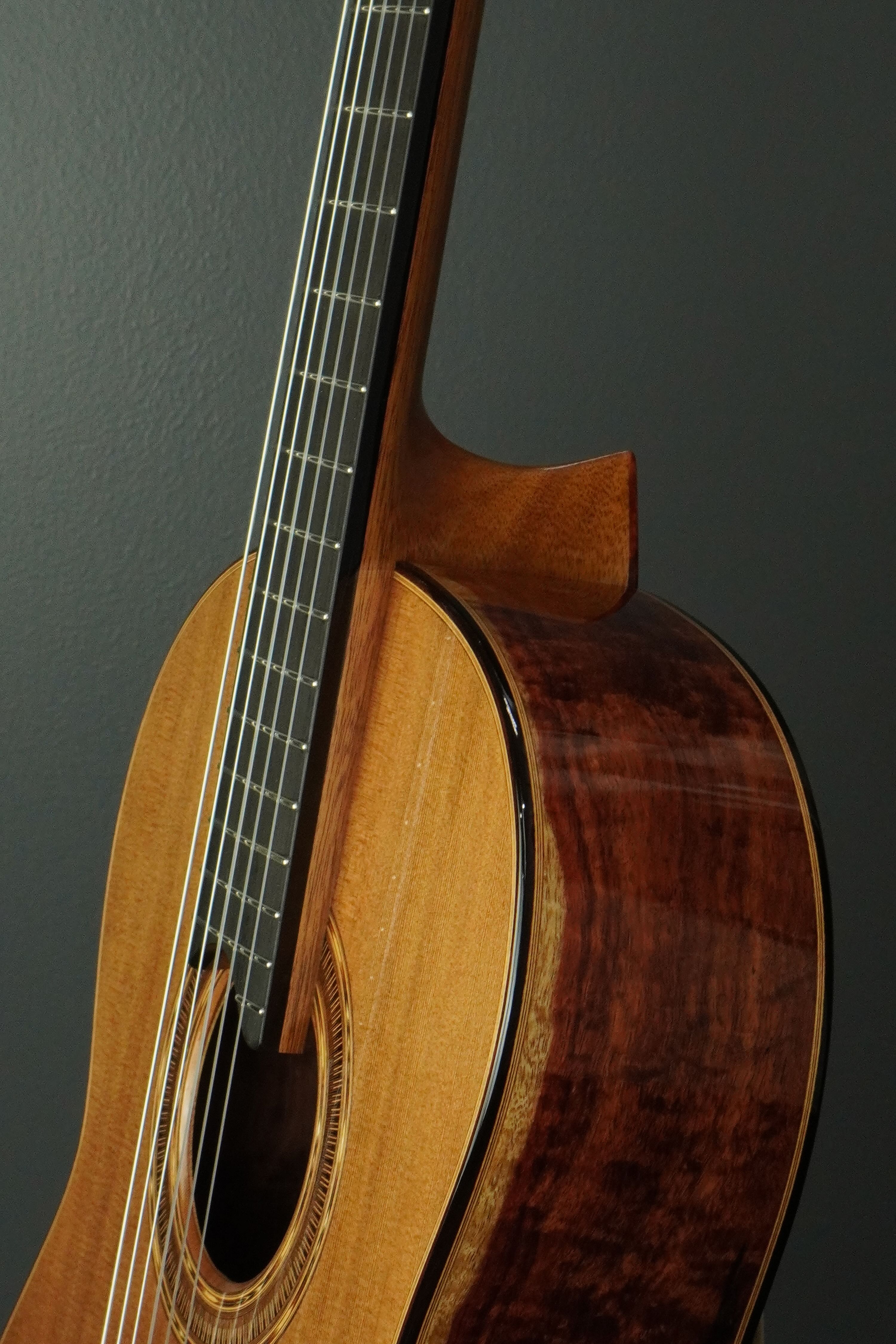 レイズドフィンガーボード、サイドサウンドポート仕様の、ナイロンストリングスのクラシカル。
