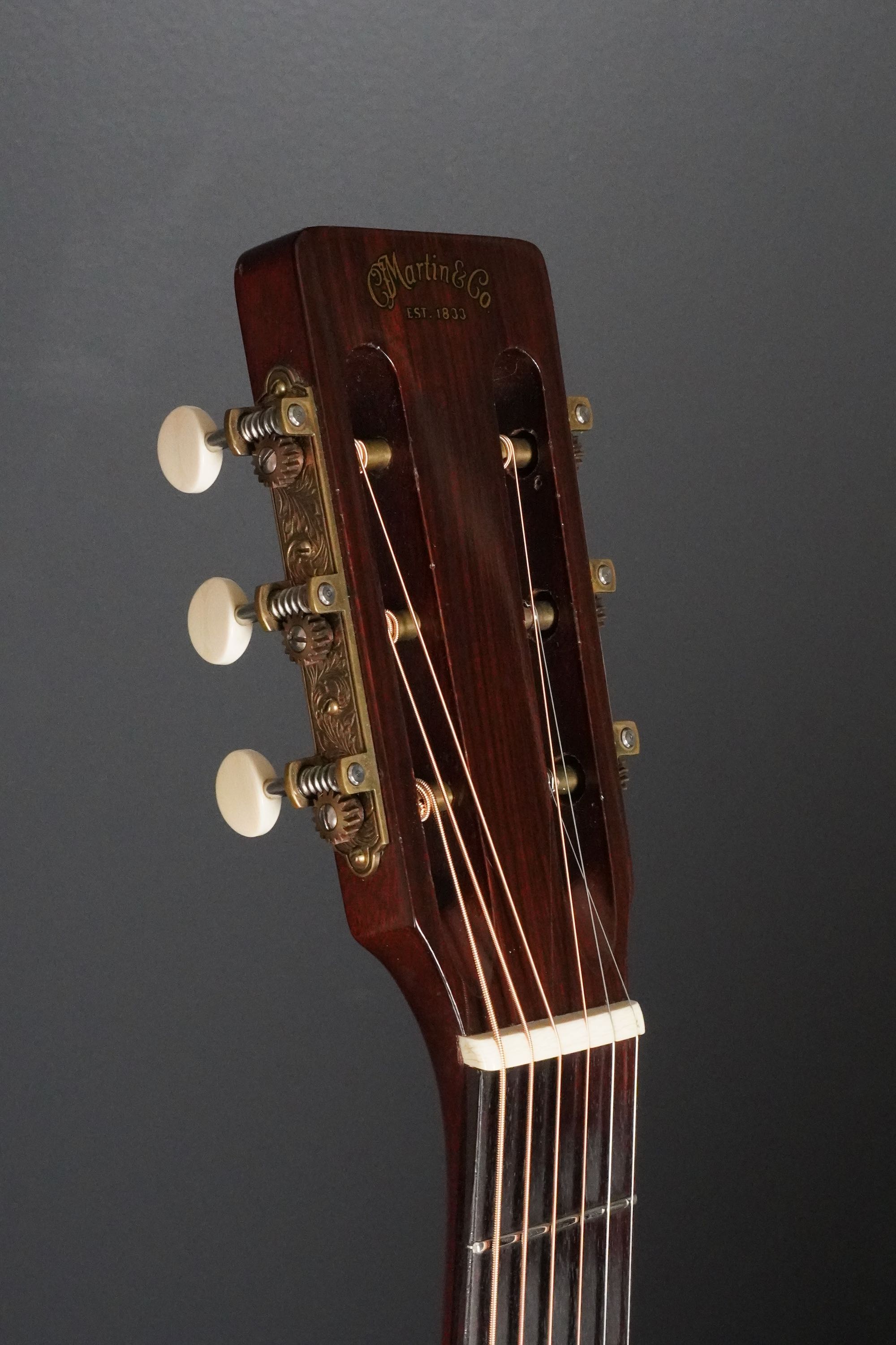 Martinの21スタイルは、18スタイルのルックスでサイド&バックにローズウッドを用い、独特な立ち位置で有名ですが、この00-21はスロッテッドヘッドに12フレットジョイントというレトロなスタイルが長く続いた、なかなか面白いモデルです。