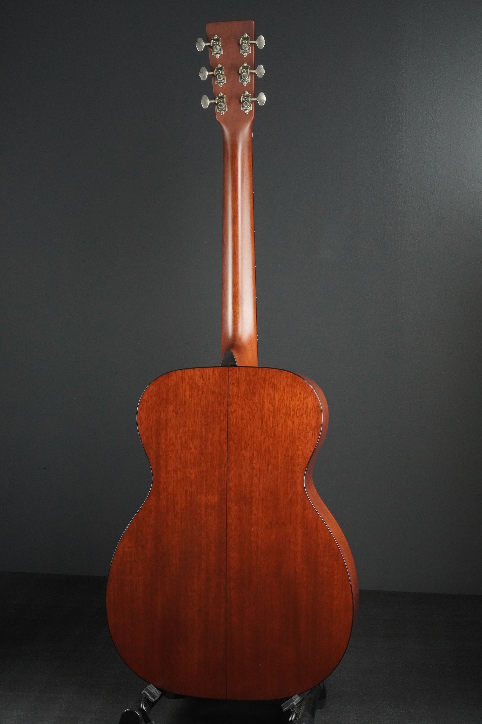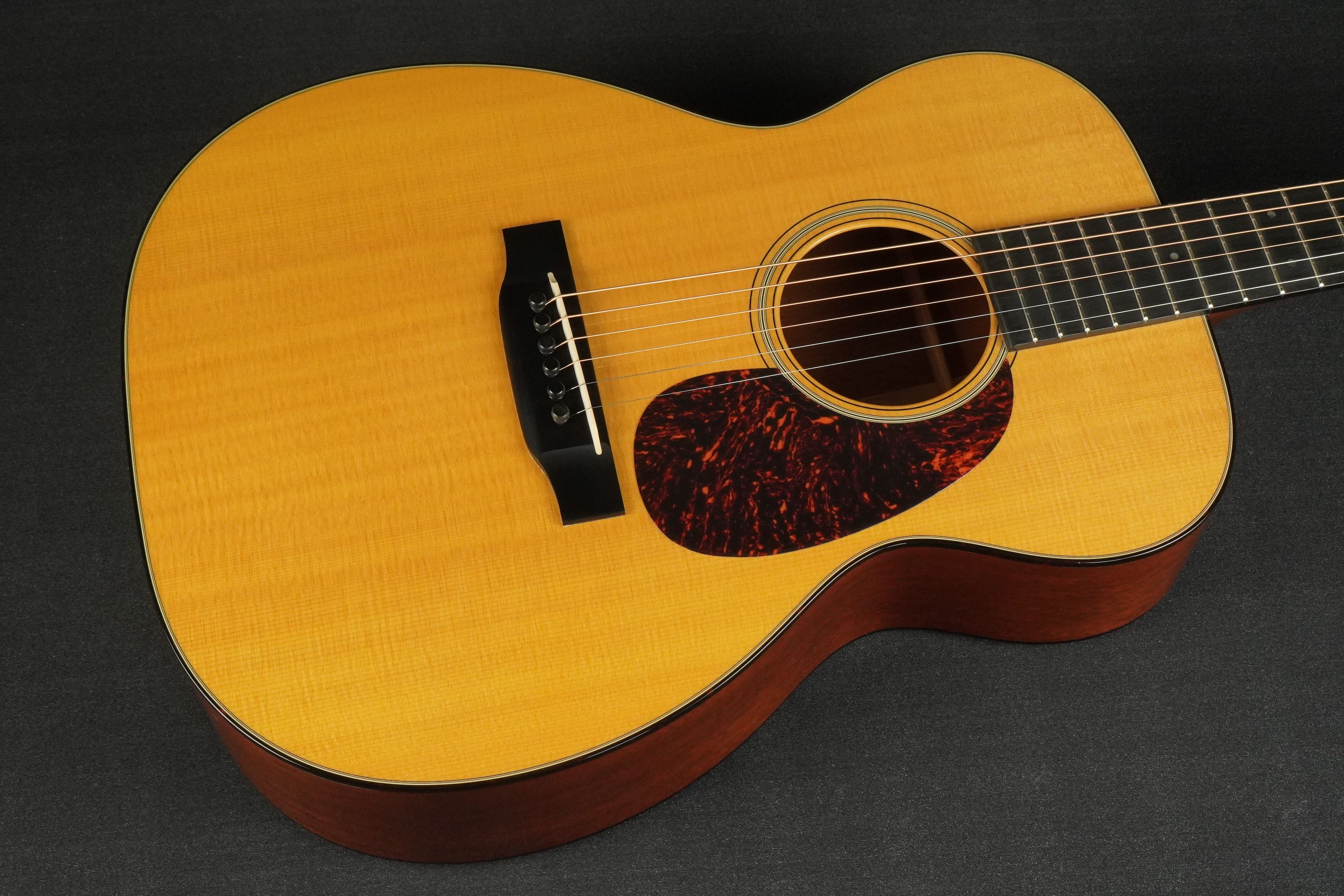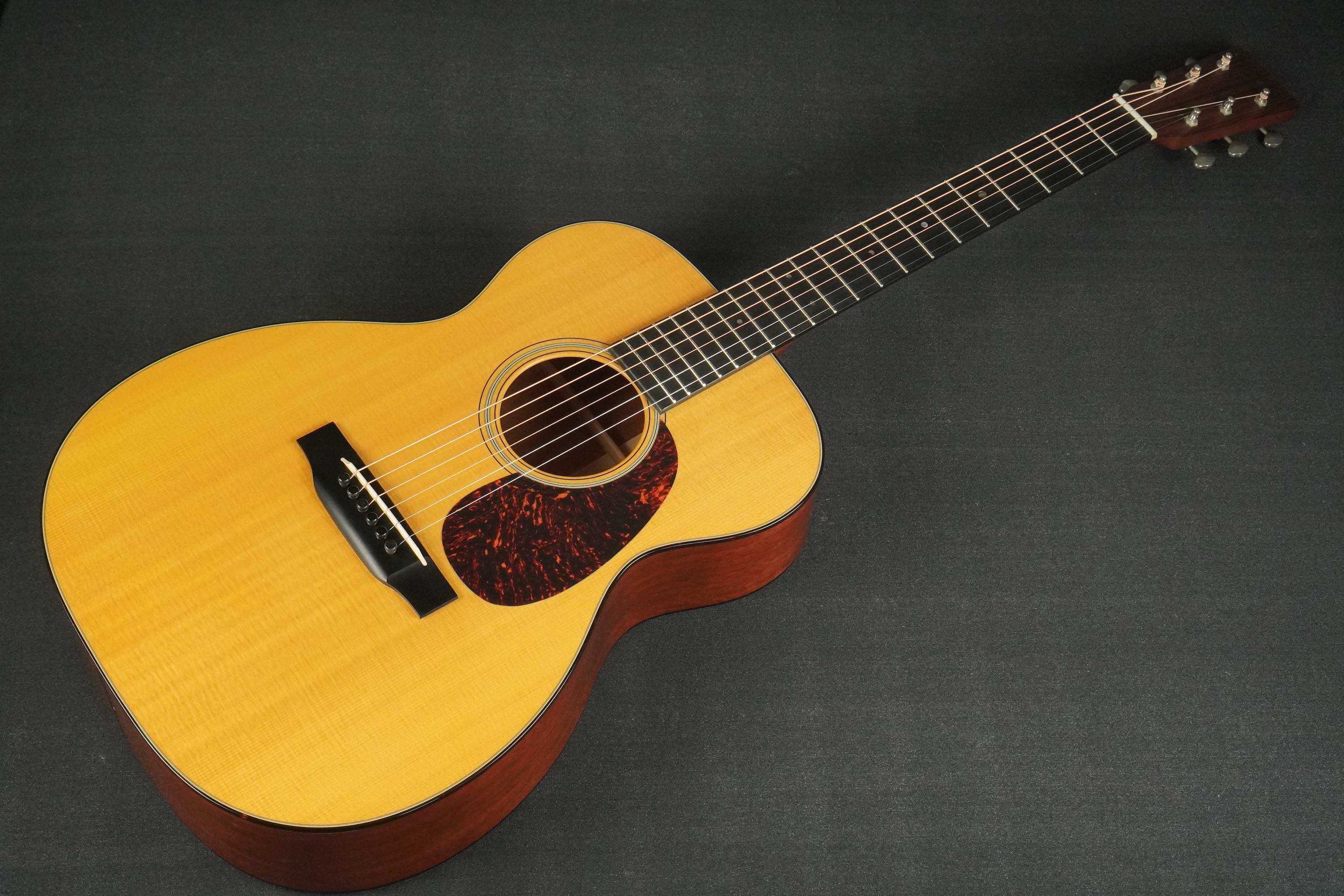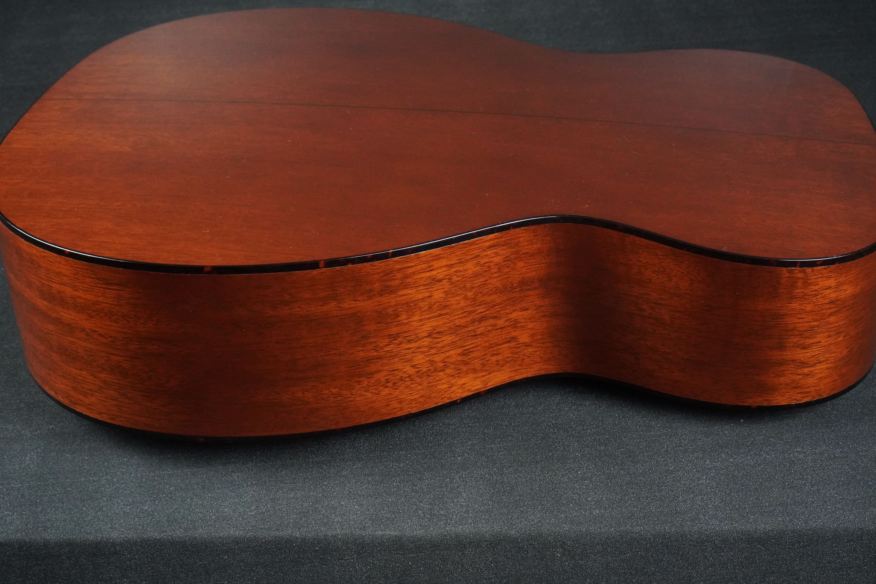 こちらも杢目がきめ細かな良いマホガニーが使われており、センターに黒いラインが細く入ったシンプルな18スタイルです。