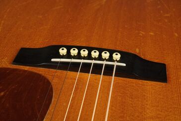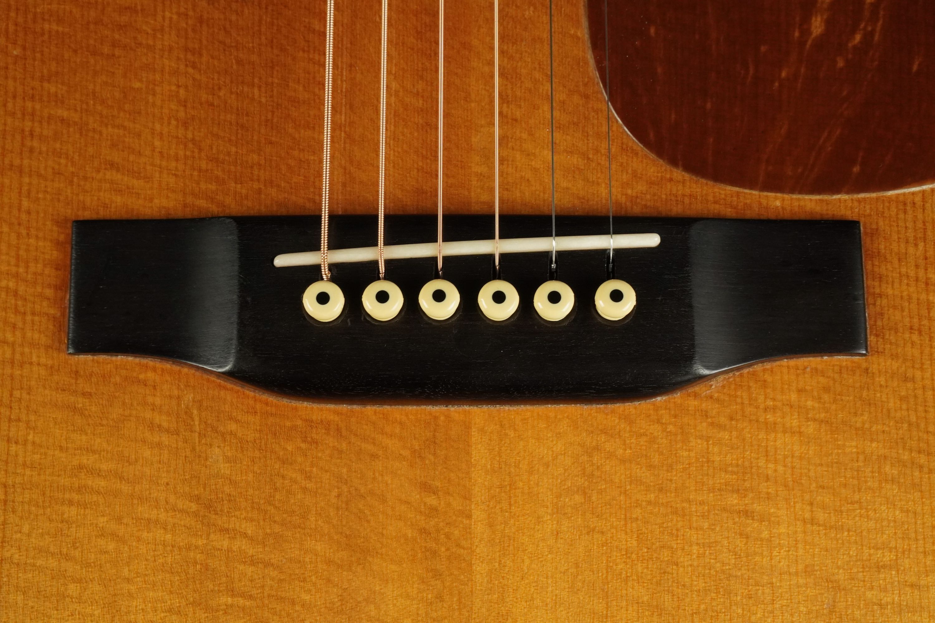 チューナー、ナット、フレット、ピックガードはオリジナル、ブリッジもオリジナルですが、3弦と4弦の間の後ろに、ネジ穴を埋めたような跡が残り、K&K Pure Mini ピックアップ取付から、エンドピンジャック仕様になっております。