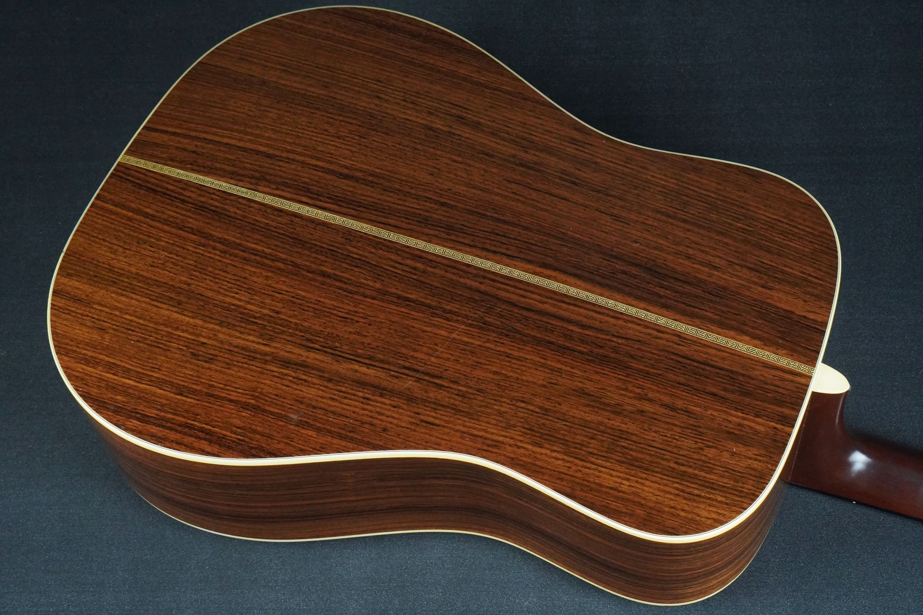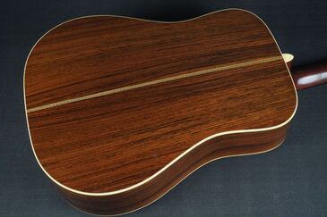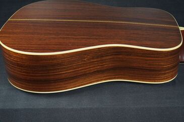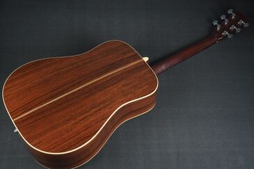 サイド&バックはインディアンローズウッド、綺麗な柾目の素晴らしい材で、バックのセンターはジグザグバックと戦前のD-28のスタイルを再現しています。