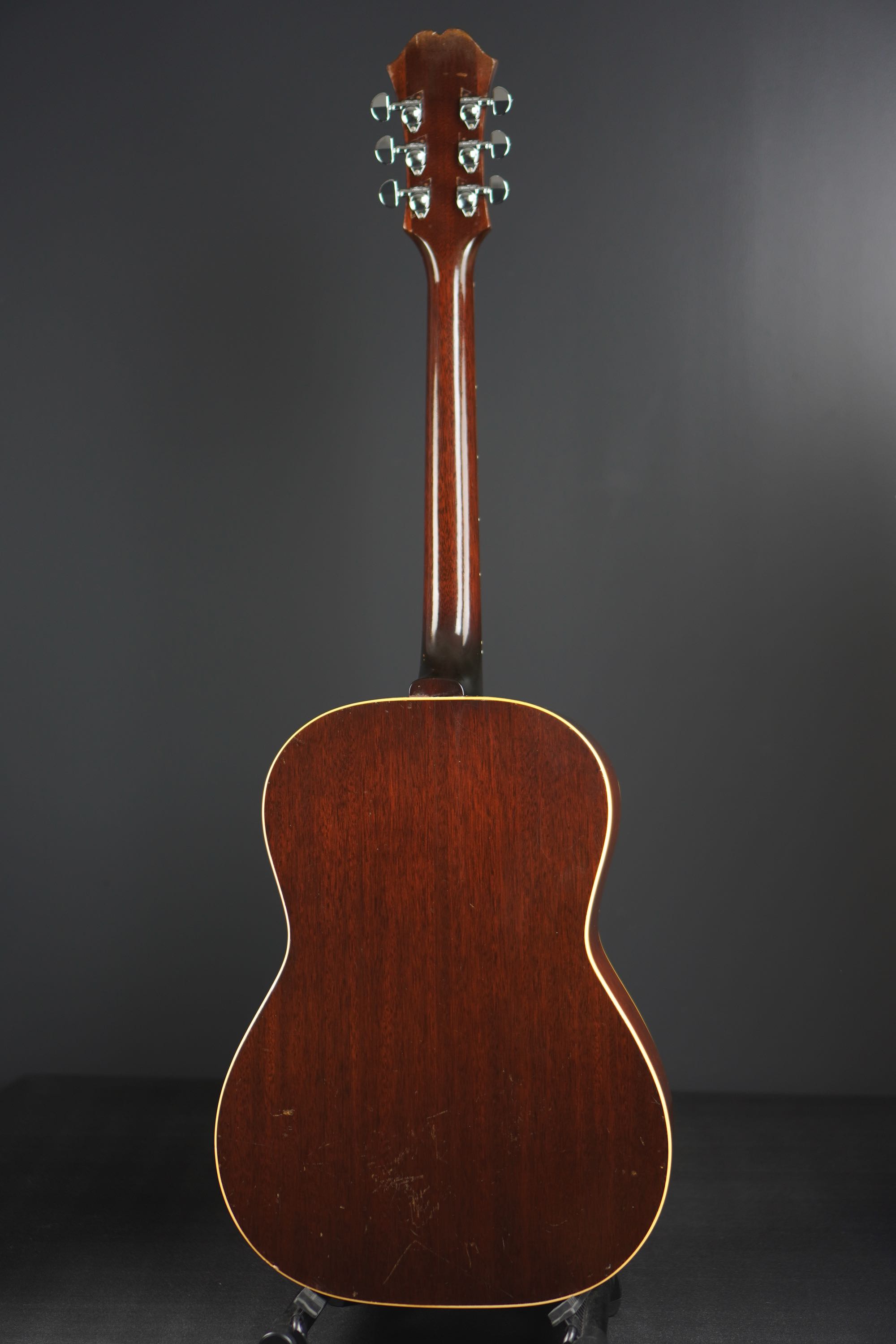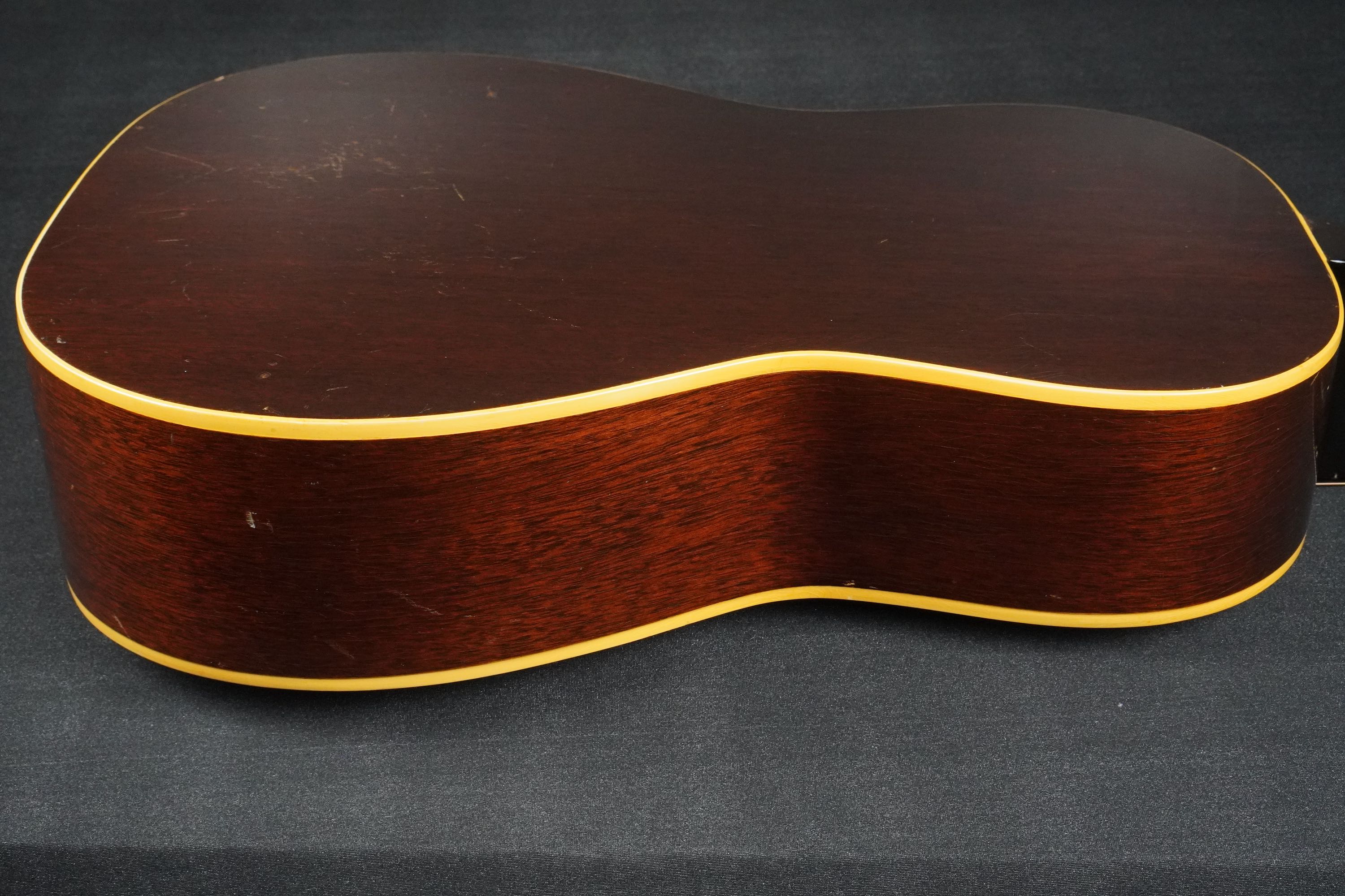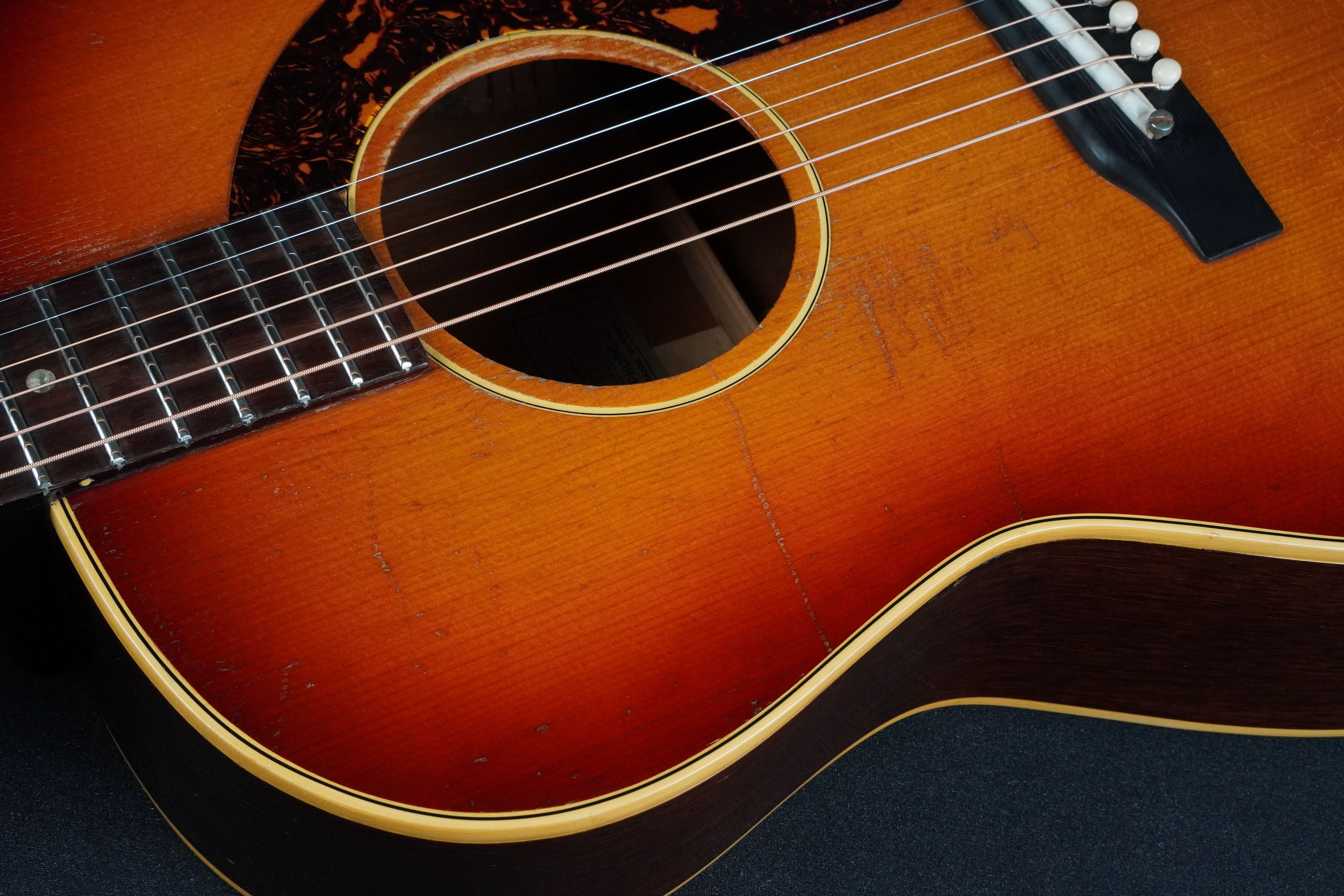 小柄なボディからのサウンドは、ストロークすると抜けの良さが堪能できるおすすめの一本で、この時代でないと出せない個性的なサウンドをもっているヴィンテージです。
