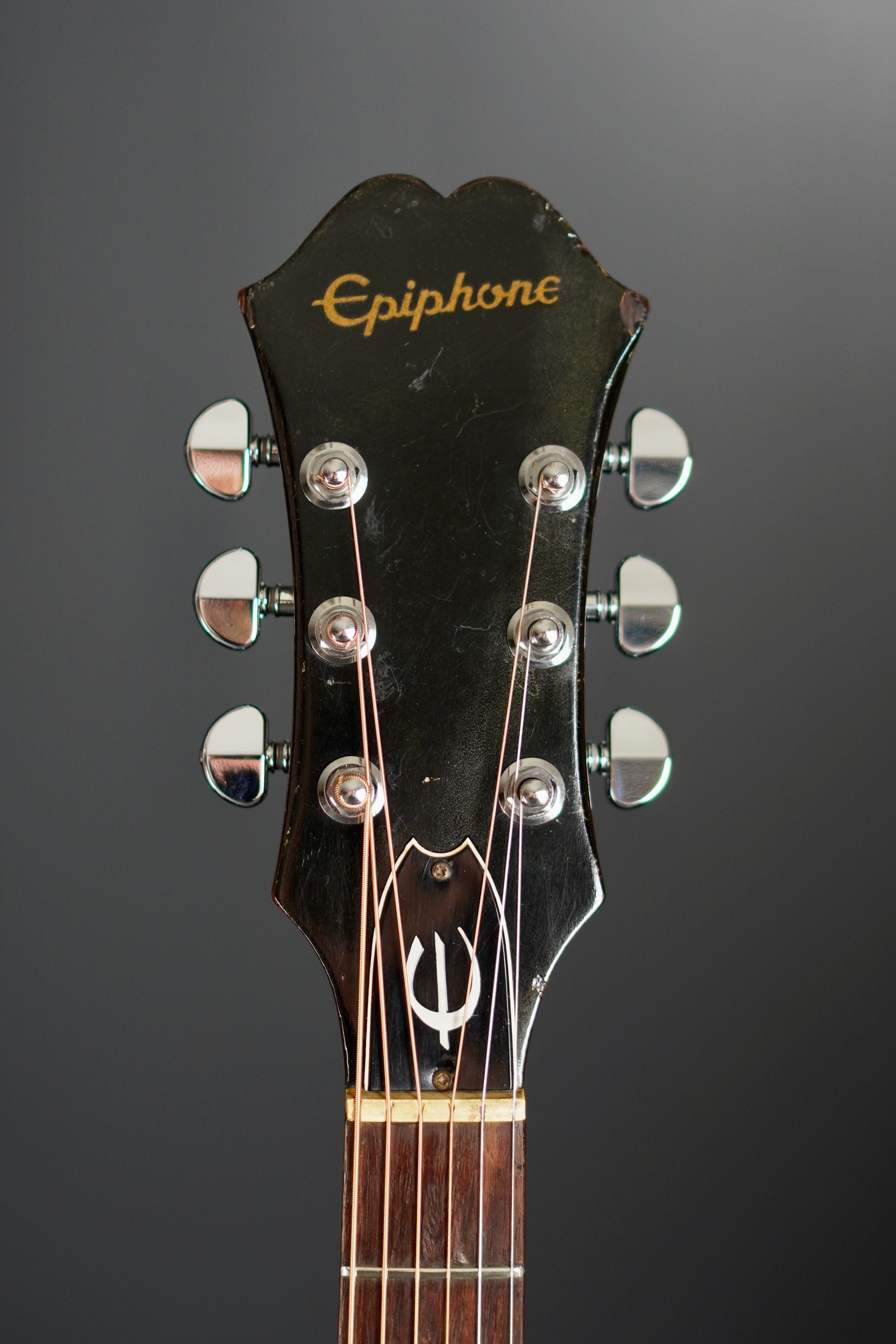 大きいEpiphoneヘッドにトラスロッドカバーのEマーク