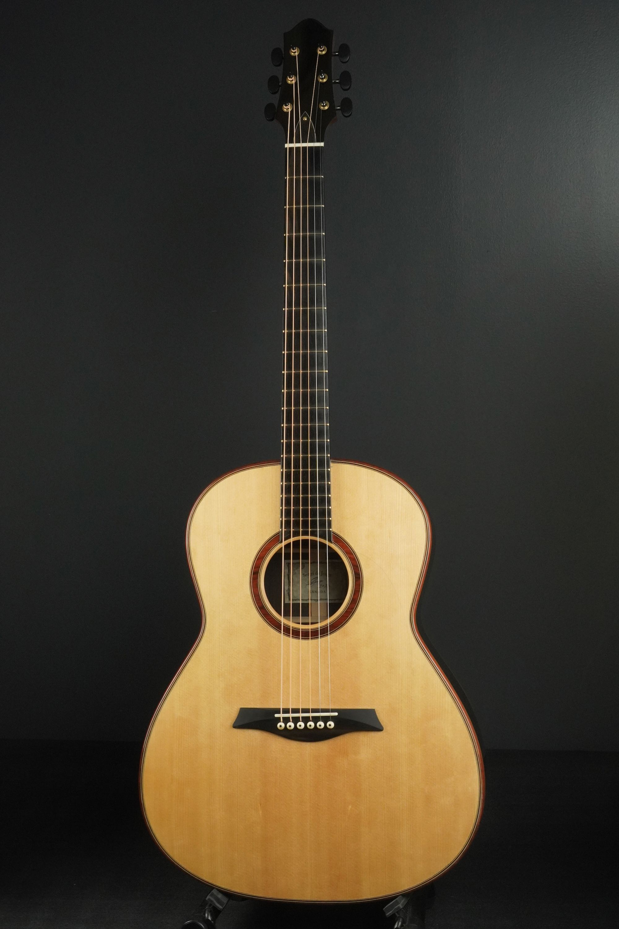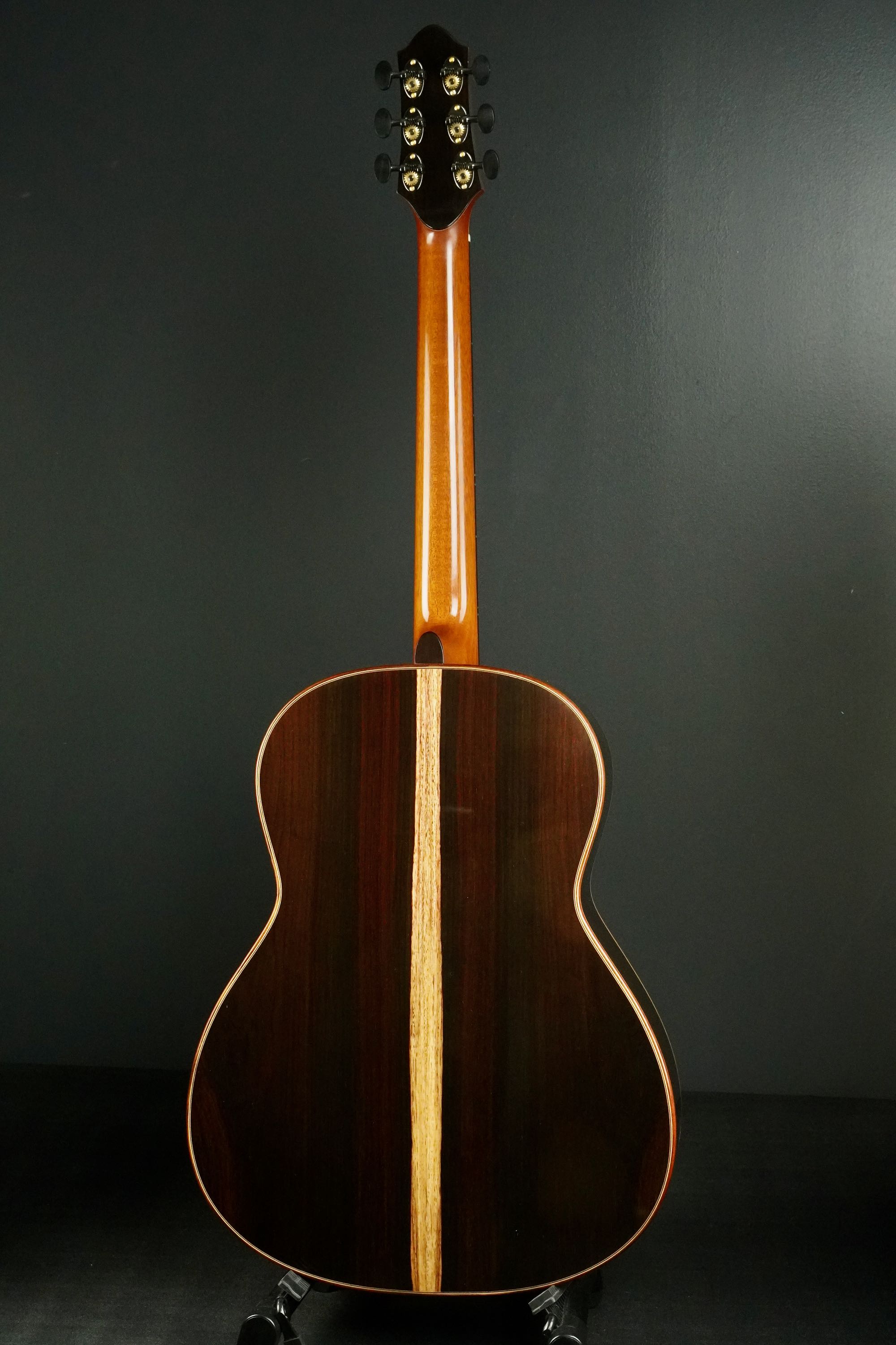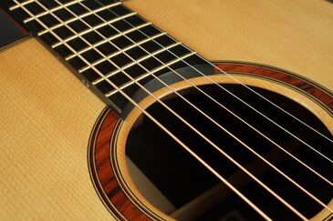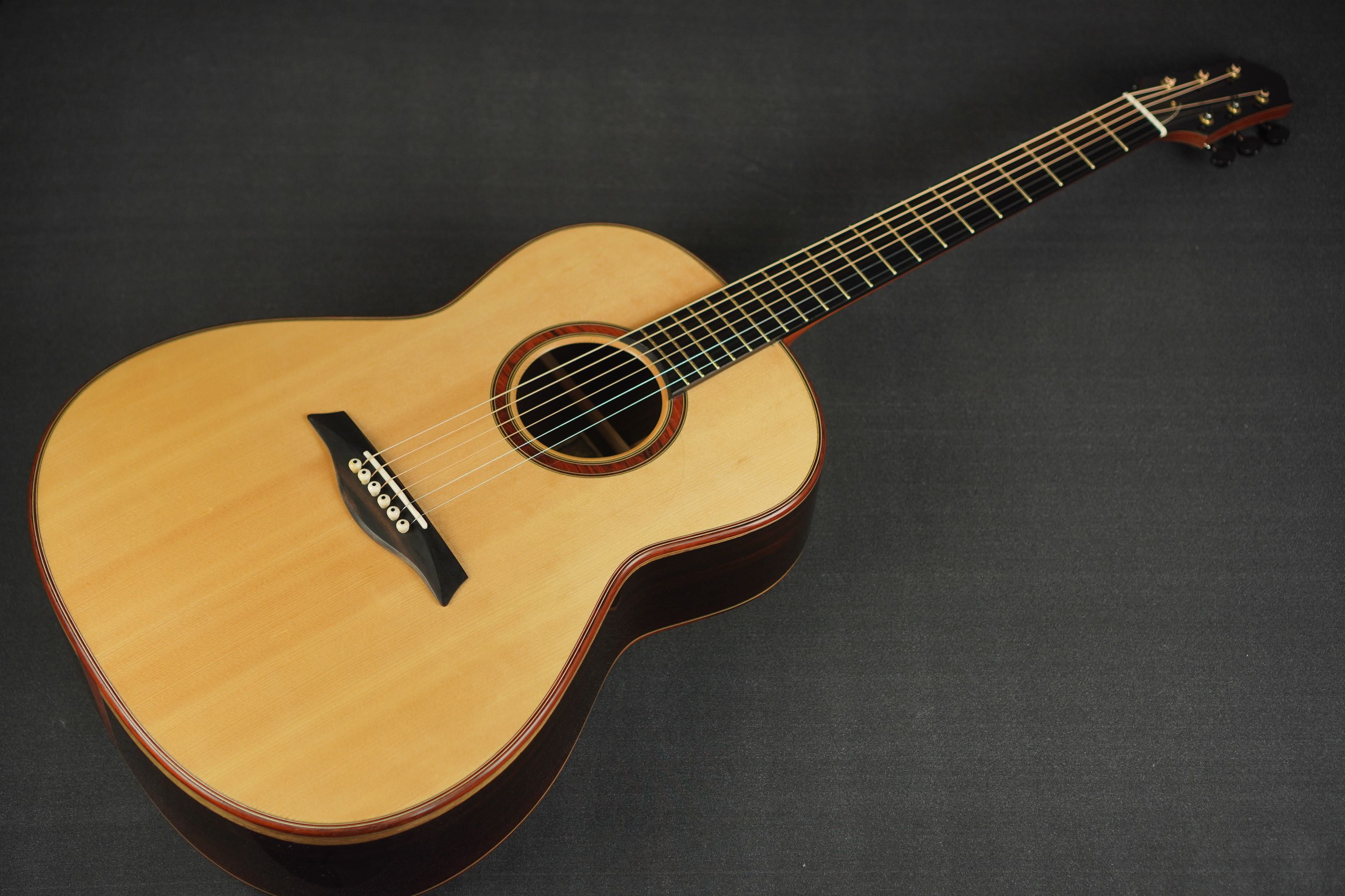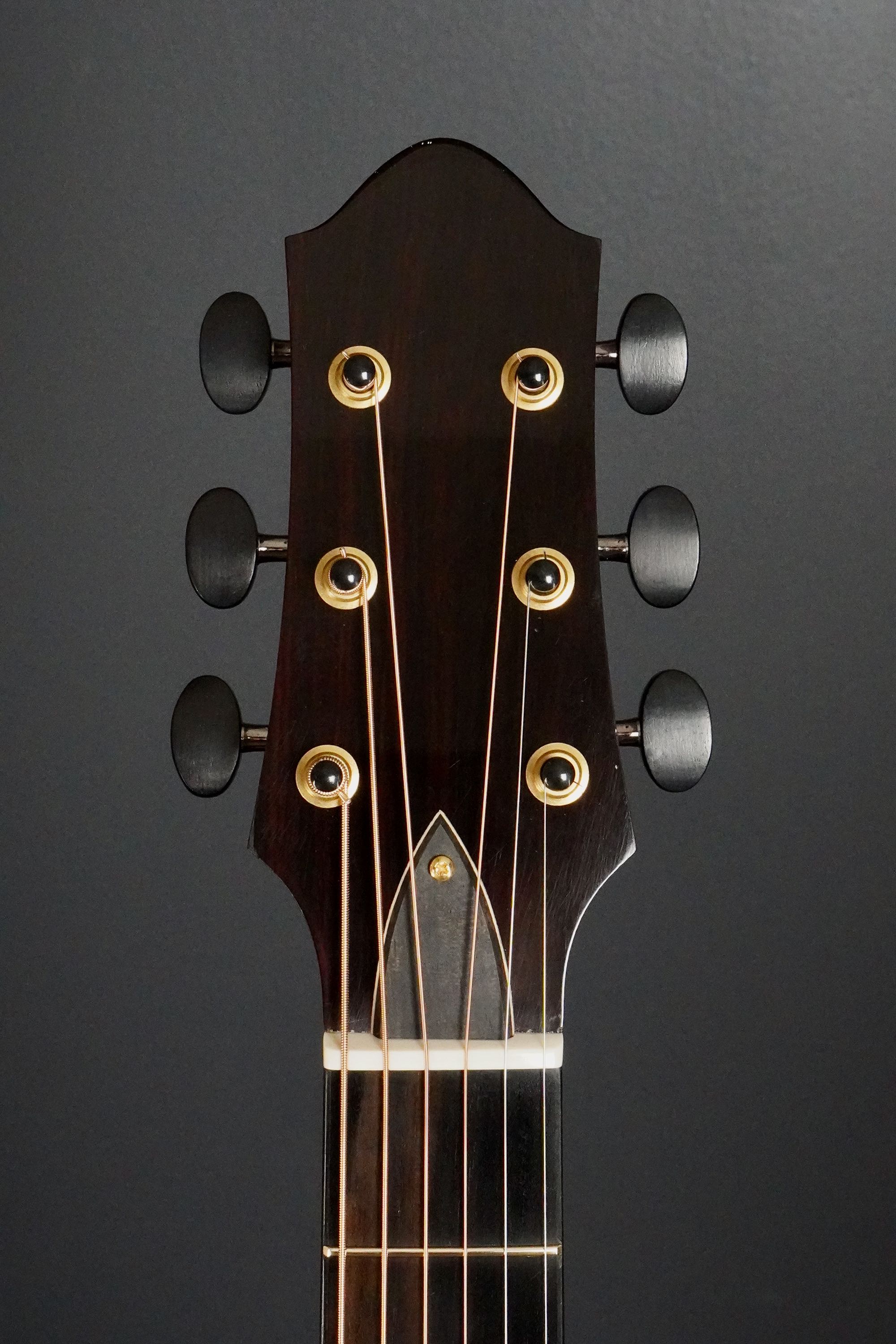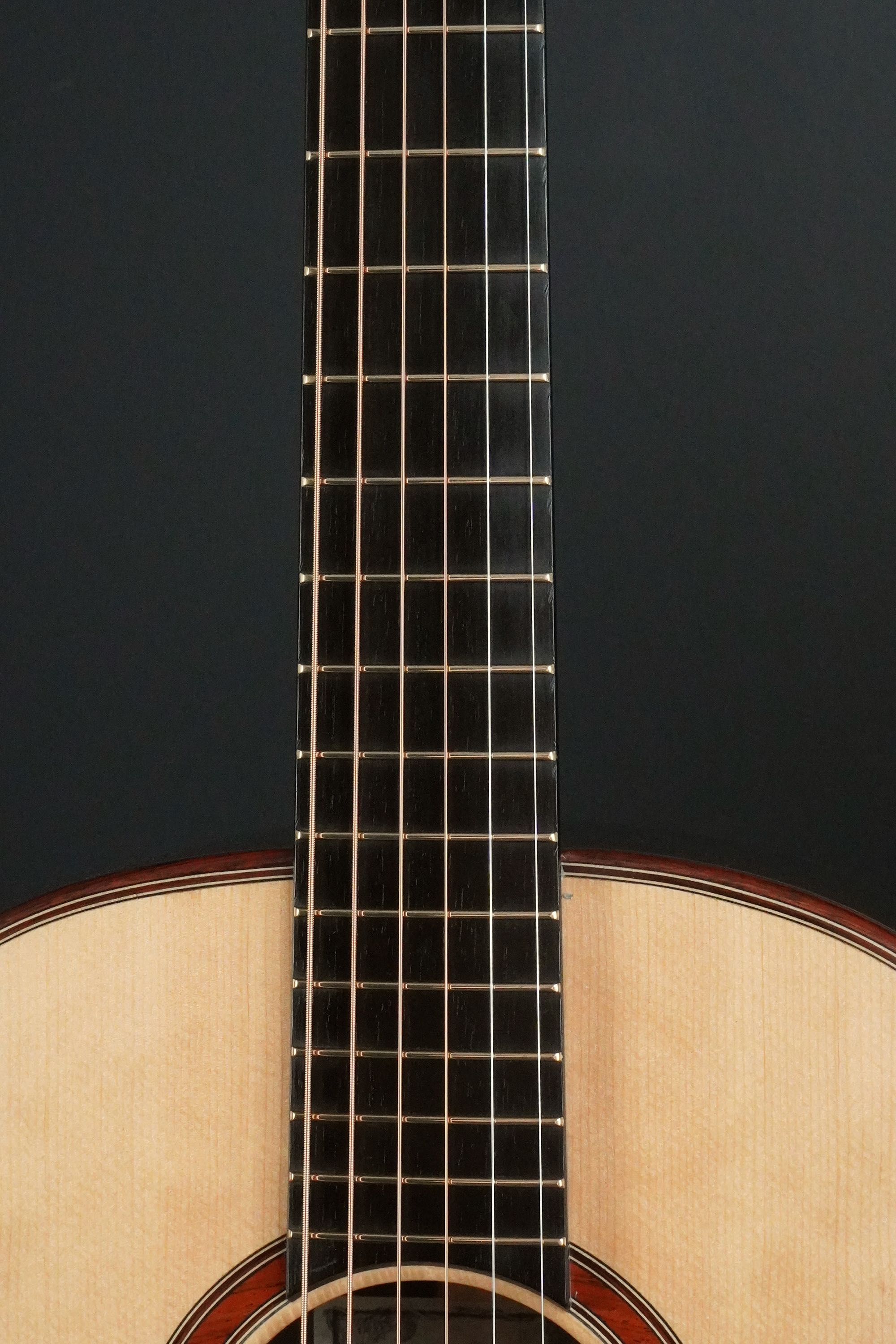 ロゼッタの周りや、トップ外周のウッドパーフリングには、ダークな色が使われ、
