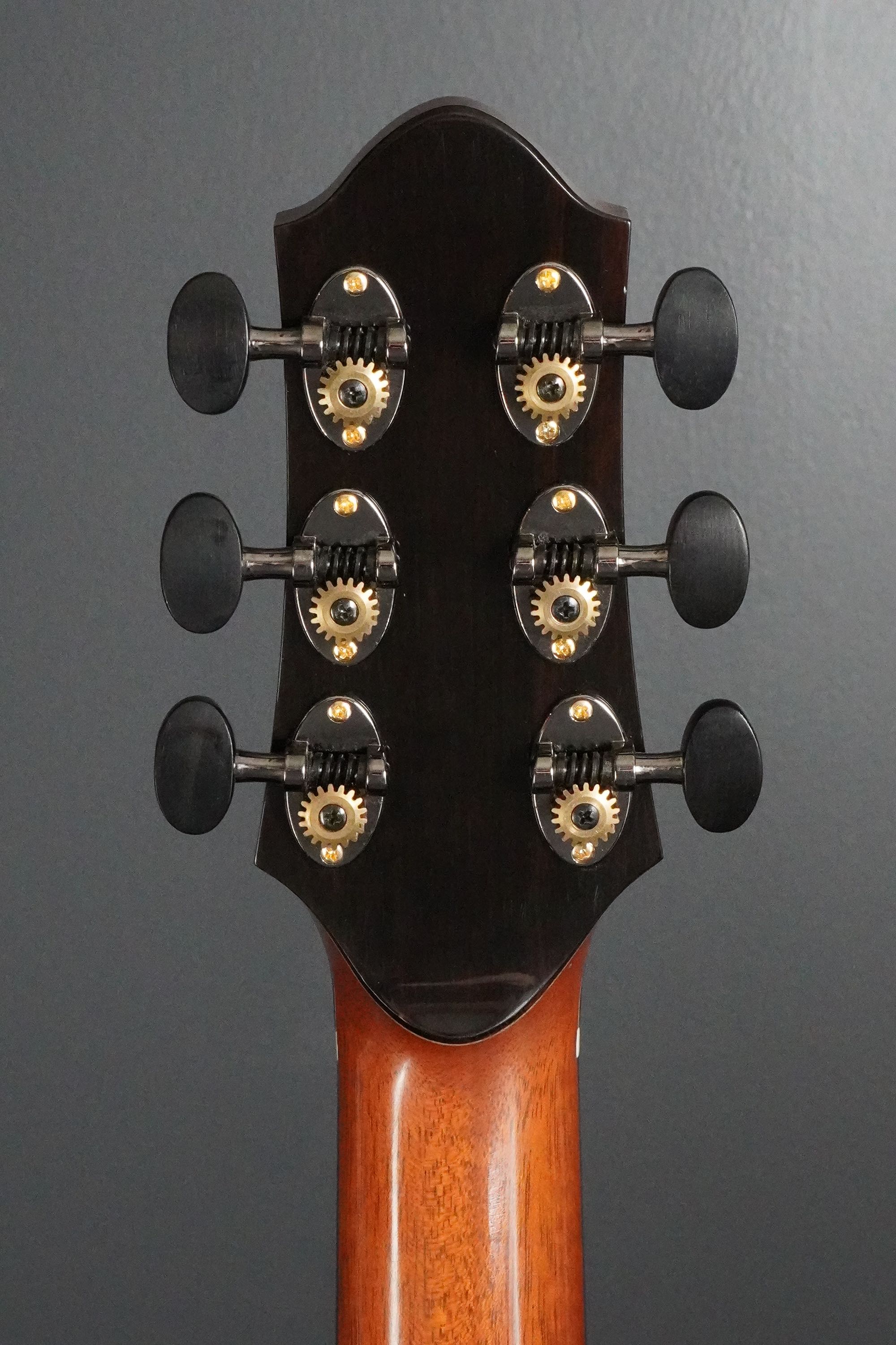 マホガニーのネックは、少し濃いめのブラウンカラーになっています。