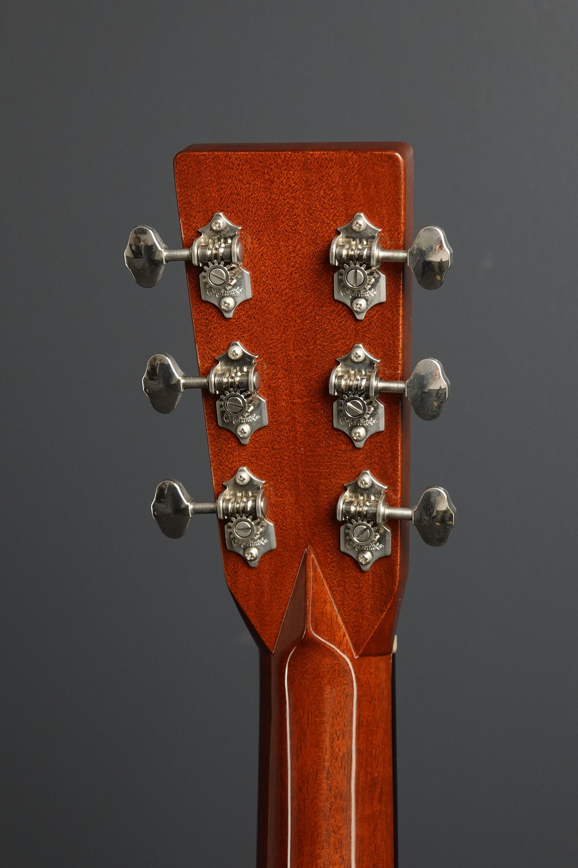 マダガスカルローズウッドの柾目の美しいヘッドプレートにはMartinのデカールロゴ、そしてヘッドの中央にはパールの入ったクロスロードインレイが入っており、チューナーはMartin刻印入りオープンギアのオリジナルが付いております。