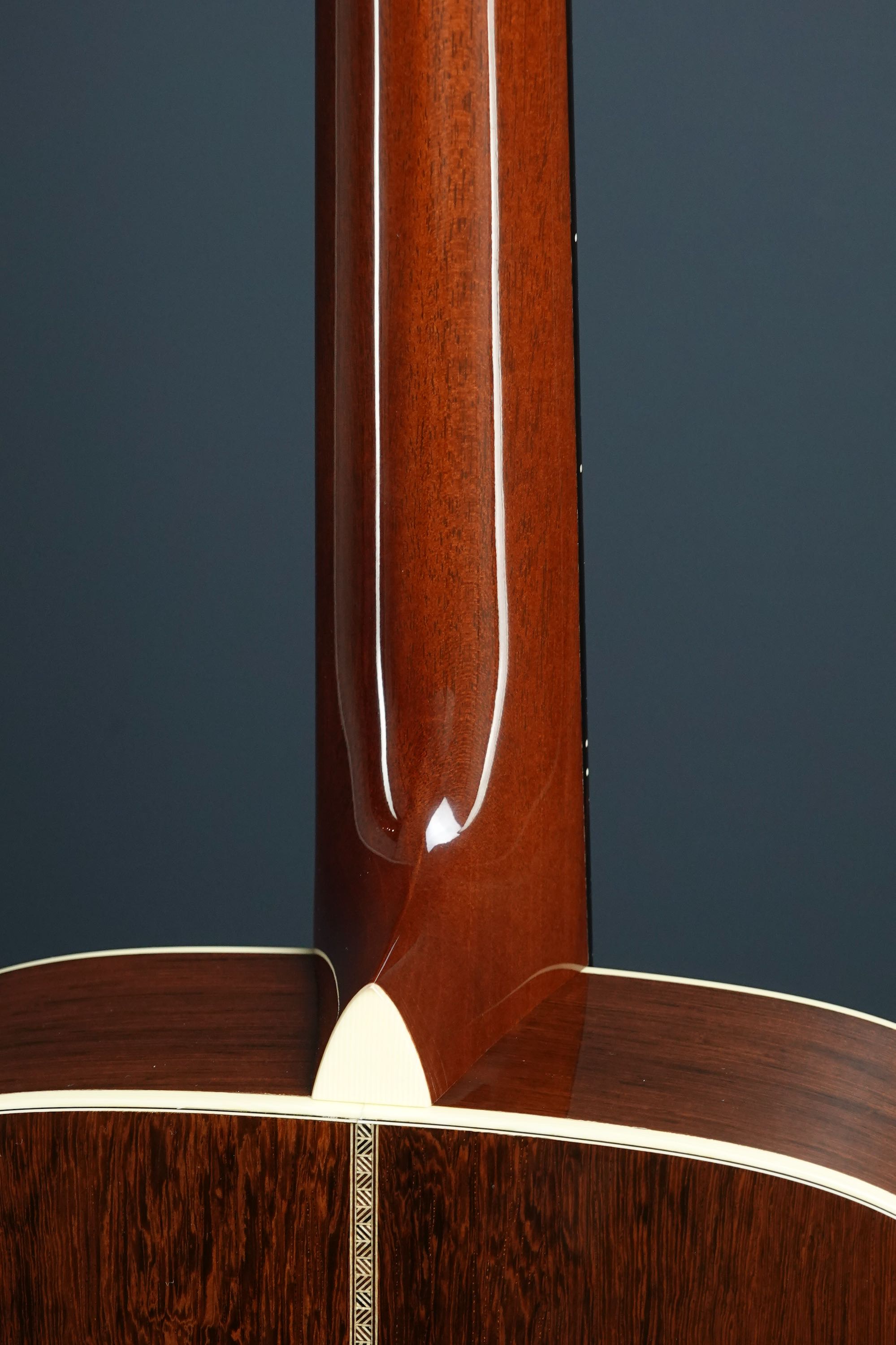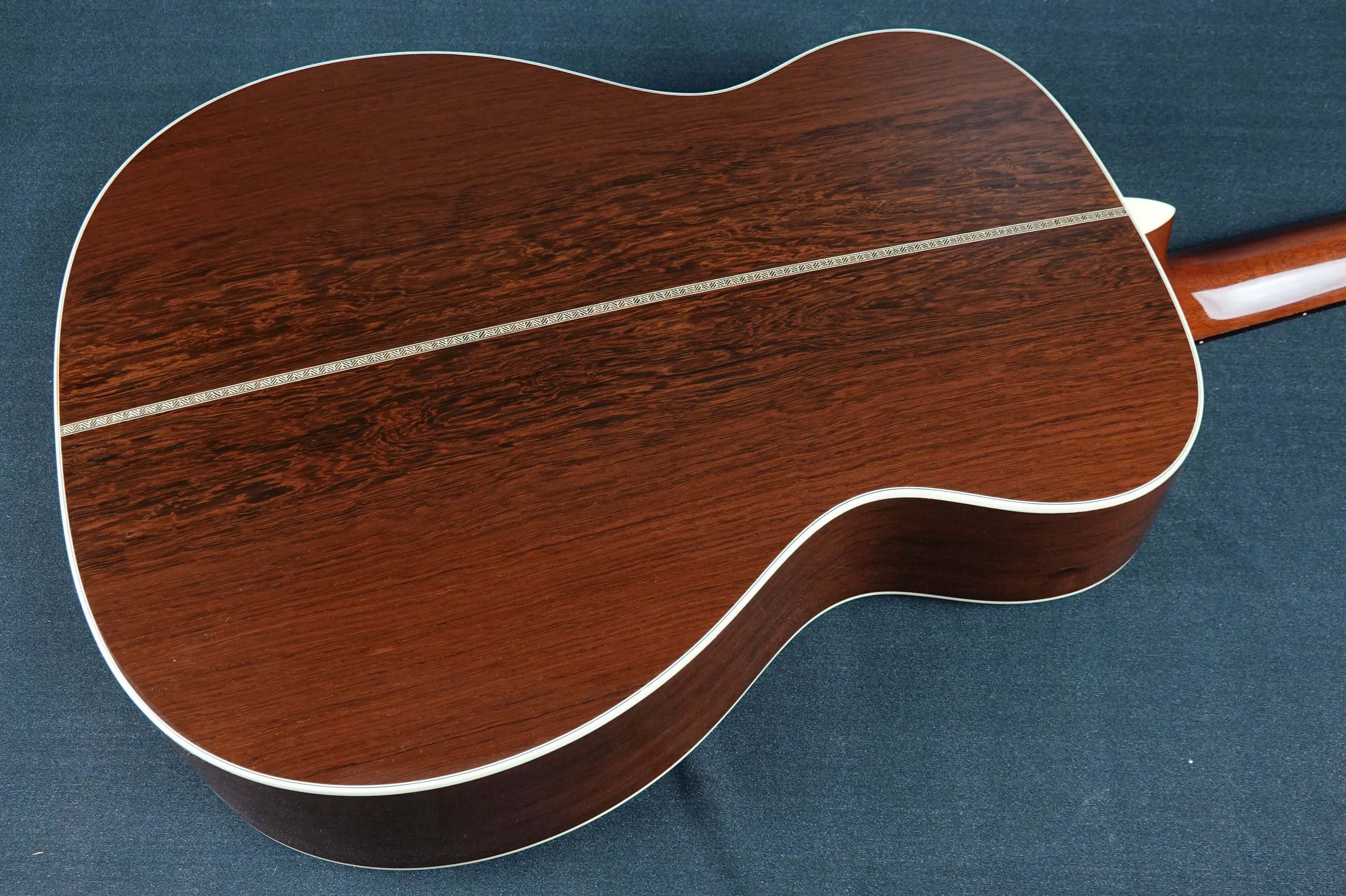 こちらは000-28ECスタイルが基本となりますが、細部まで見ていくとなかなか拘った仕様を持っており、トップのシトカスプルースはとても細かな木目の美しく良質なスプルース材が用いられ、サイド&バックに用いられたマダガスカルローズウッドも、バックのセンターが独特な杢目を持つエキゾティックで綺麗な良材で、限定モデルらしく厳選されたウッドマテリアルが用いられております。