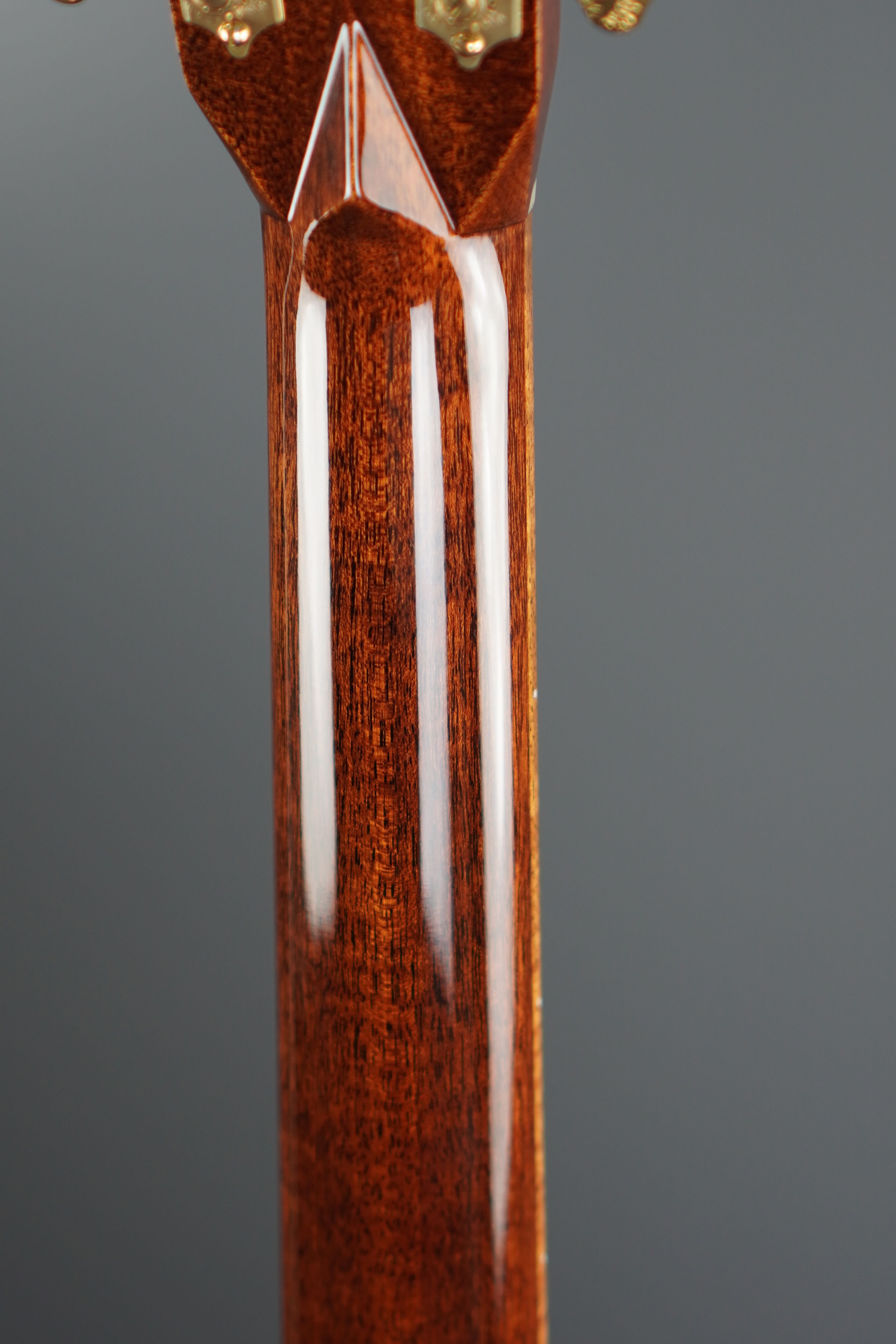 ブレーシングにもアディロンダックを用いたフォアードのスキャロップで1/4インチのXブレーシングとトラディショナルなスペックで、きめ細かい倍音感と、抜けが良くクリアーなトーンが堪能できます。
