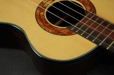 サイドのサウンドポートもあるため、演奏していて、大きく広がる音像の中に包まれる感覚も心地良いウクレレです。