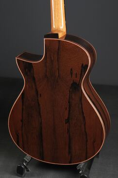 トップ材はベアクローの杢が輝く、美しいヨーロピアンスプルースを選択。