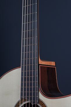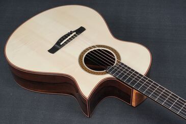 厳選された木材を使った、フローレンタインカッタウェイ仕様のエレガントなOMモデルです。