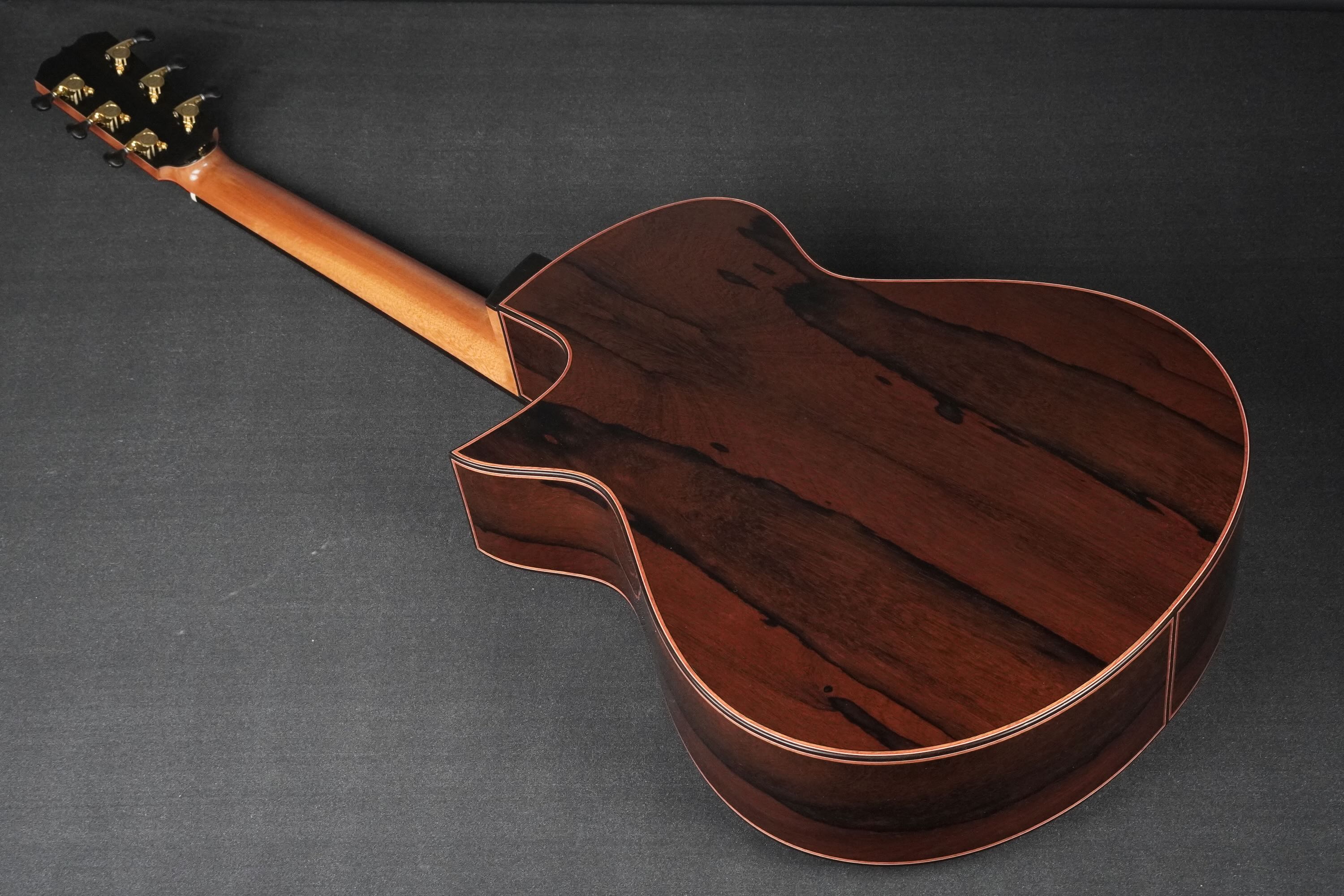 ヘッドプレートにも、印象的なマダガスカルローズウッドが使われ、