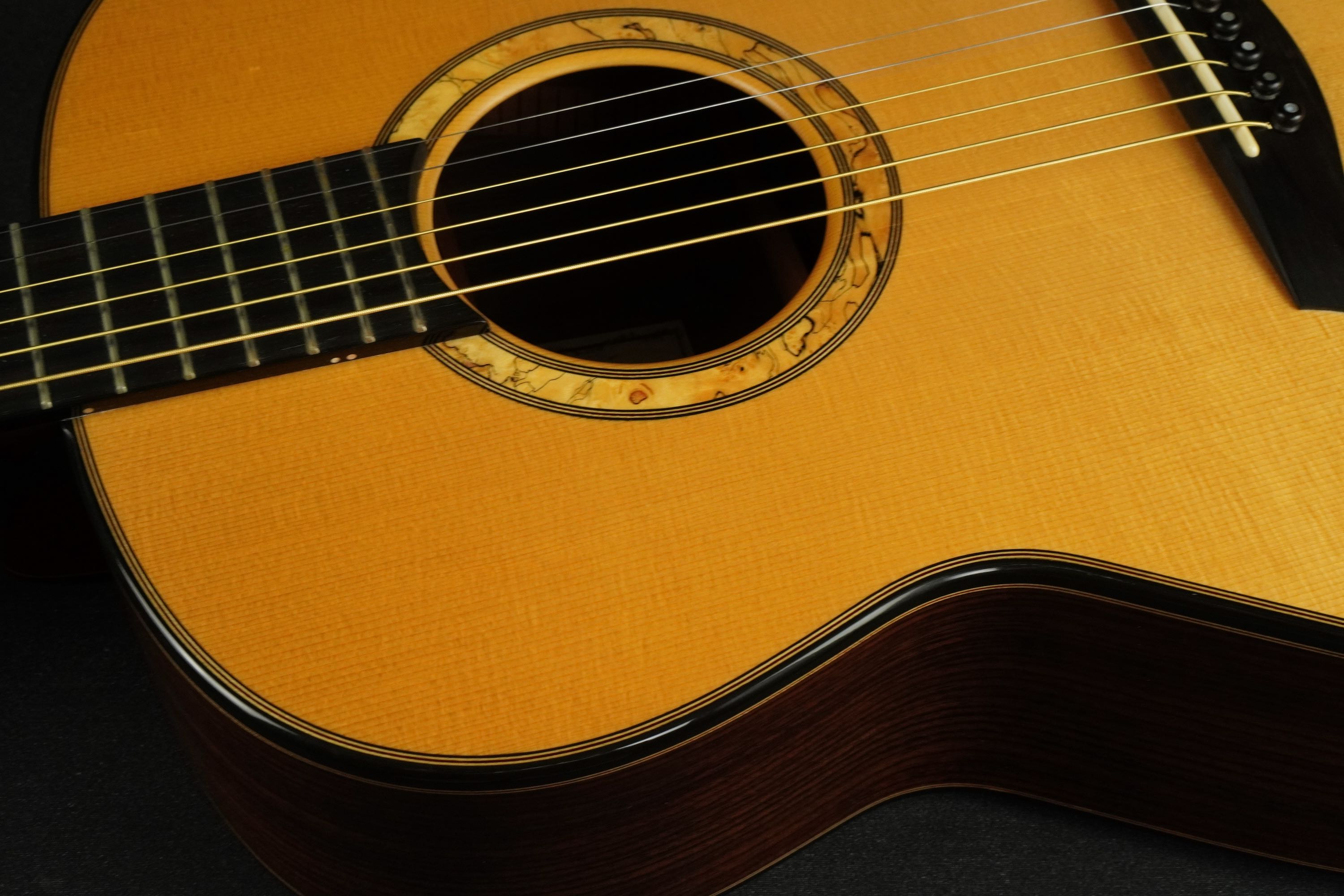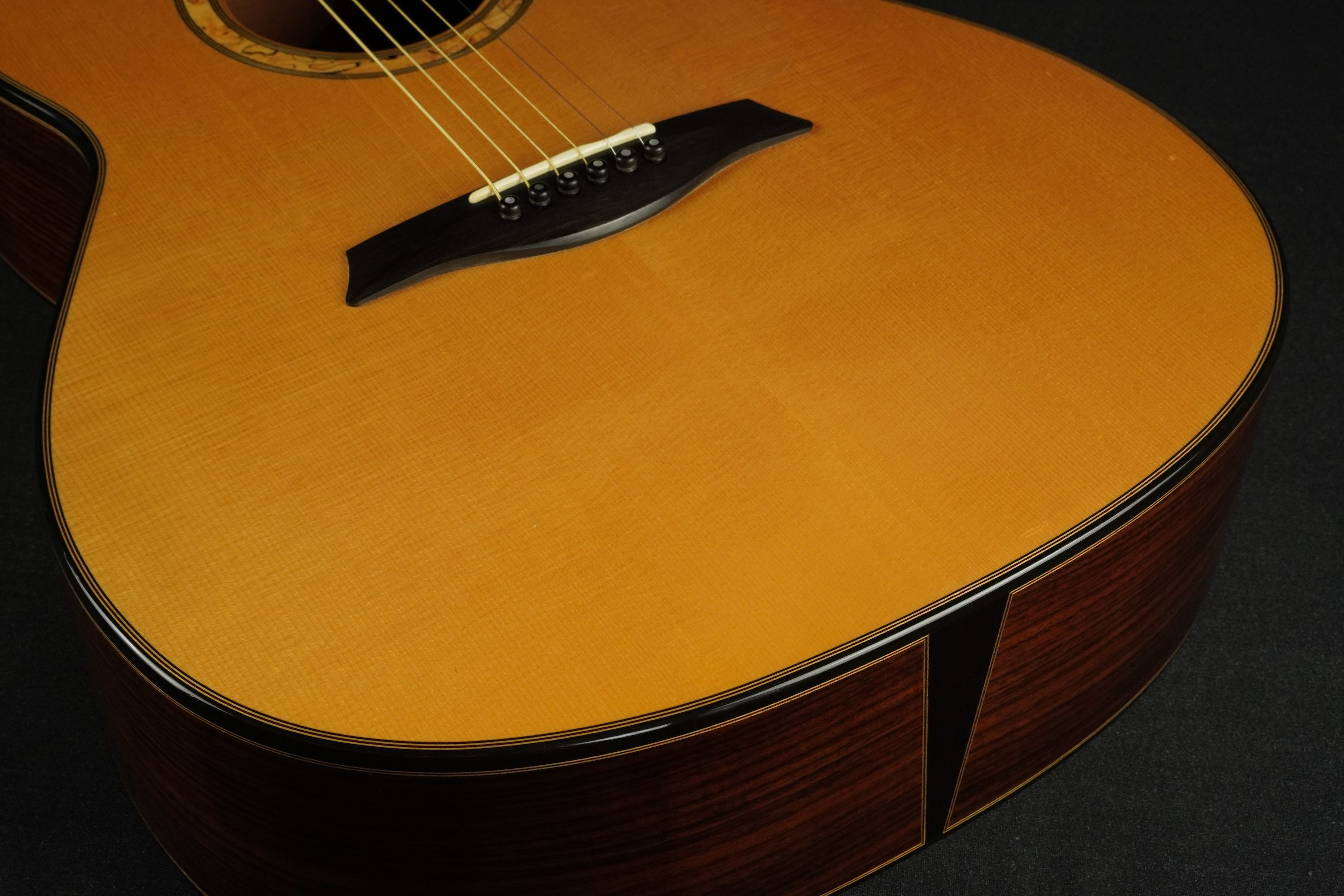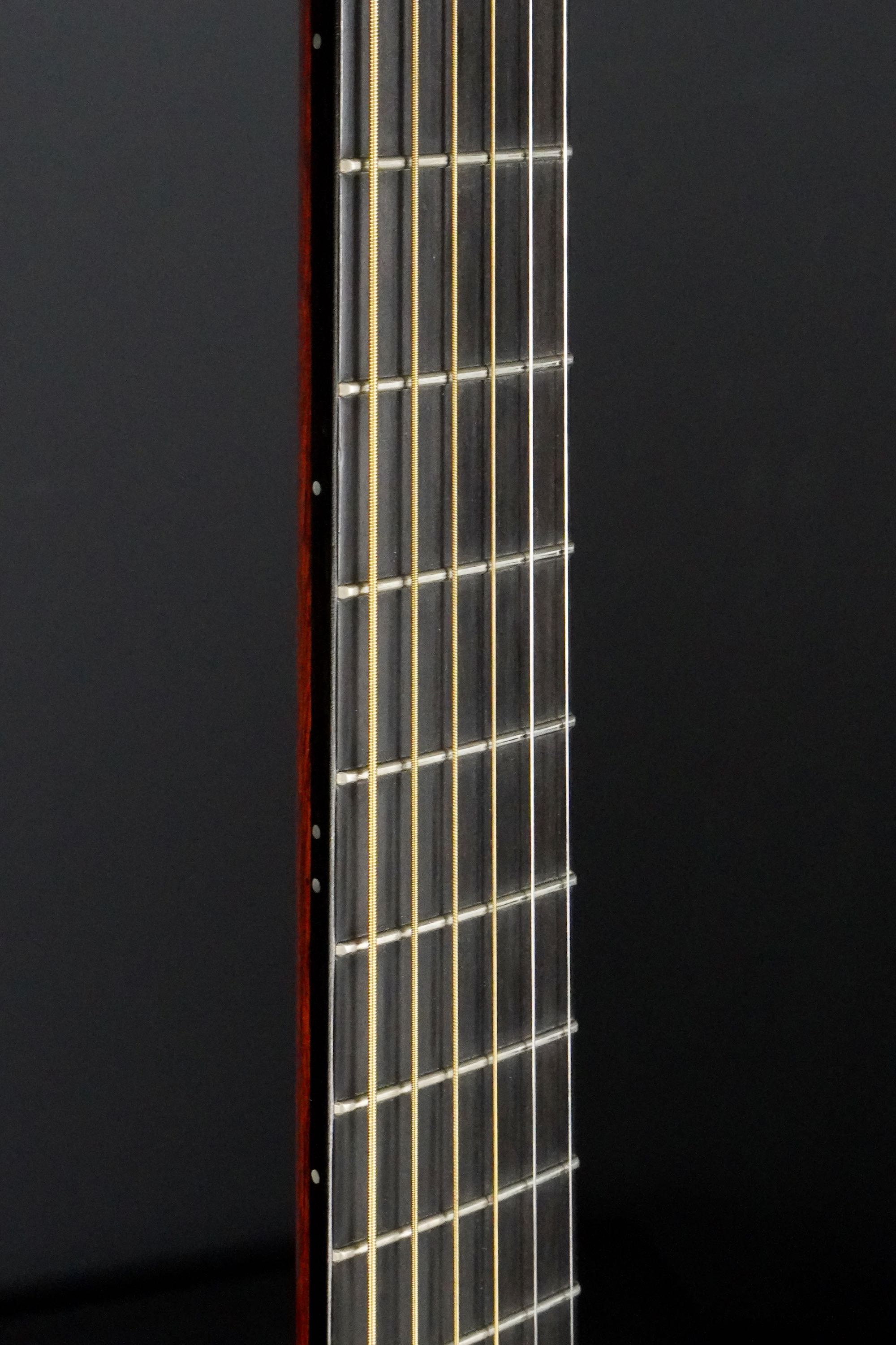 クラシックギターの様にダイナミックレンジが広く、弱いタッチでの響きの美しさや、力強く弾いた時の余裕は驚異的で、低音と高音にピークのあるドンシャリ系のギターが多い中、こういった中高域の響きが美しいギターは非常に珍しいかもしれません。